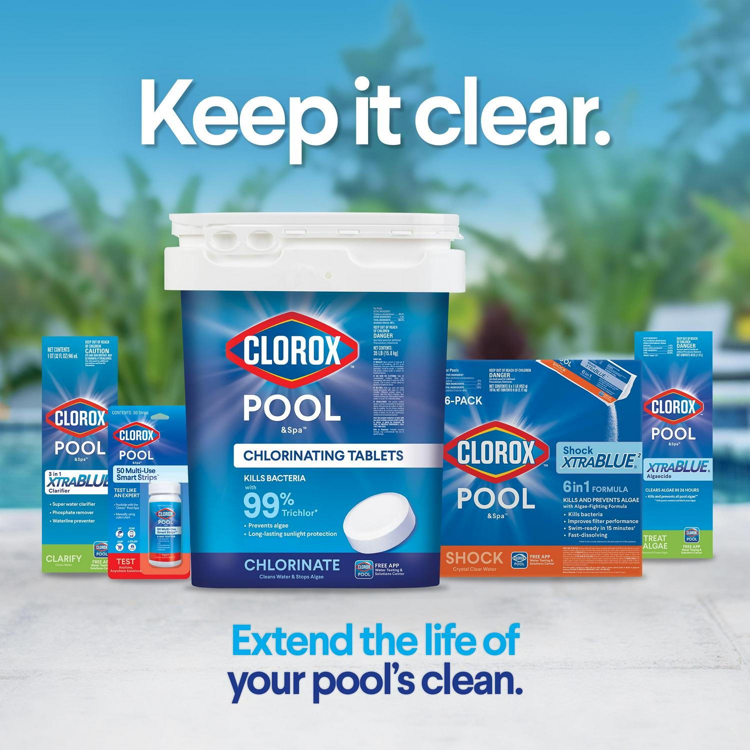 Keep the swimming pool ready with Clorox Pool&Spa Chlorinating Tablets. They kill bacteria and stop algae. Each tablet is stabilized to ensure protection from algae and bacteria. They’re also protected from sunlight, enabling them to last for a longer period of time. Use these Clorox chlorine tablets weekly for a good, clean swim you, your family and your friends can enjoy. For use in your pool’s skimmer, feeder or floater. These tablets are composed of 99% chlorine, making it arguably the strongest chlorine tablet on the market. Make sure you pair this 3in chlorine tablet with a quality shock, such as Clorox Pool&Spa Shock XtraBlue2.