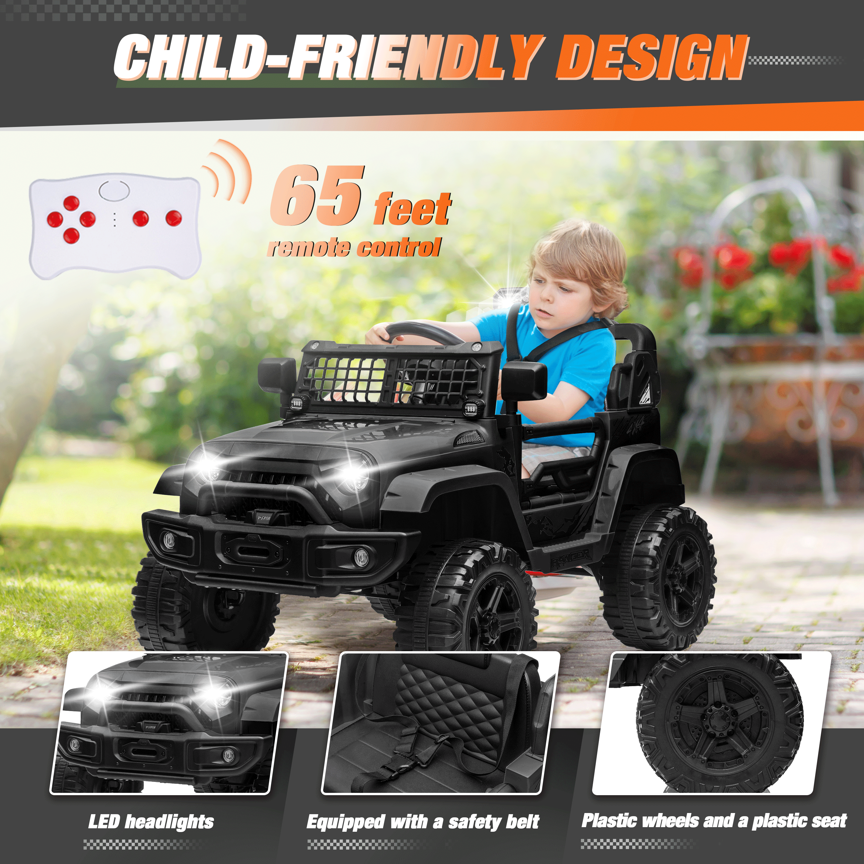 Clovercat 12v 7 Hours Powered Ride on Toys Car with Parent Remote, New Year Gifts for Kids, Bluetooth Music, Spring Suspension, Led Lights, Black – Perfect for Back to School Supplies