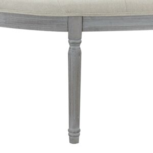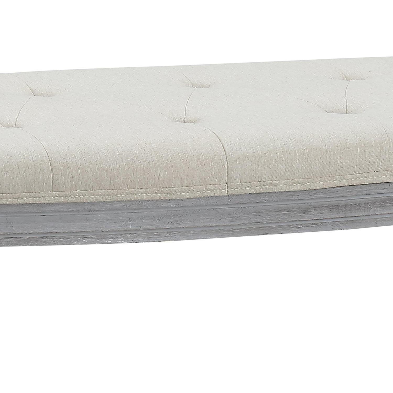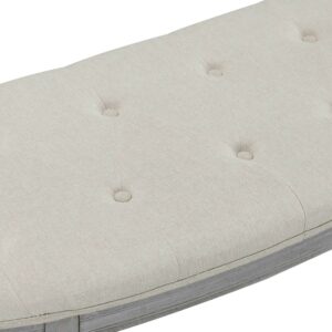 Coastal Button Tufted Light Beige Upholstered Bench with Weathered Gray Legs