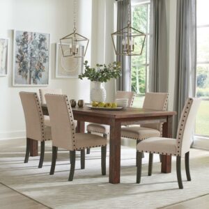 A dining table that’s solidly built with clean, crisp lines is what any home could use. This warm rectangular table has an enduring appeal. Sitting on four sturdy, square-shaped legs, it conveys character and reliability. Put six to eight ladder-back chairs around the table for an unforgettable gathering. This table is at home in a formal dining space or in a rustic style cabin.