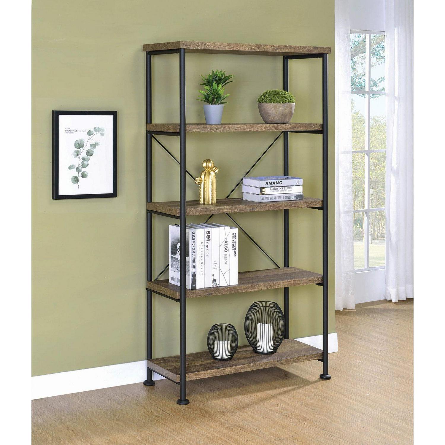 Coaster Furniture Analiese 4-shelf Bookcase Rustic Oak Oak Finish, Wood Finish, Steel Finish