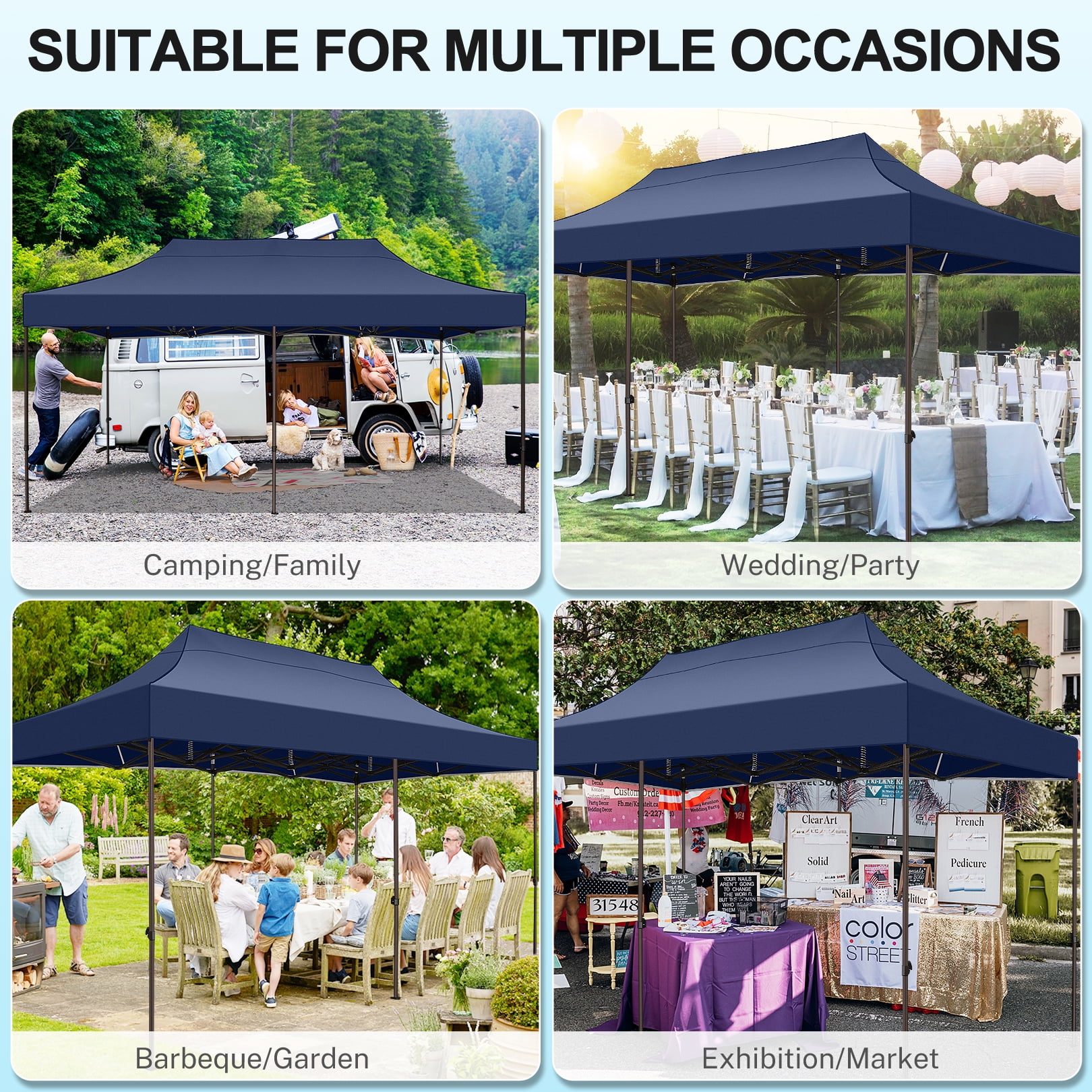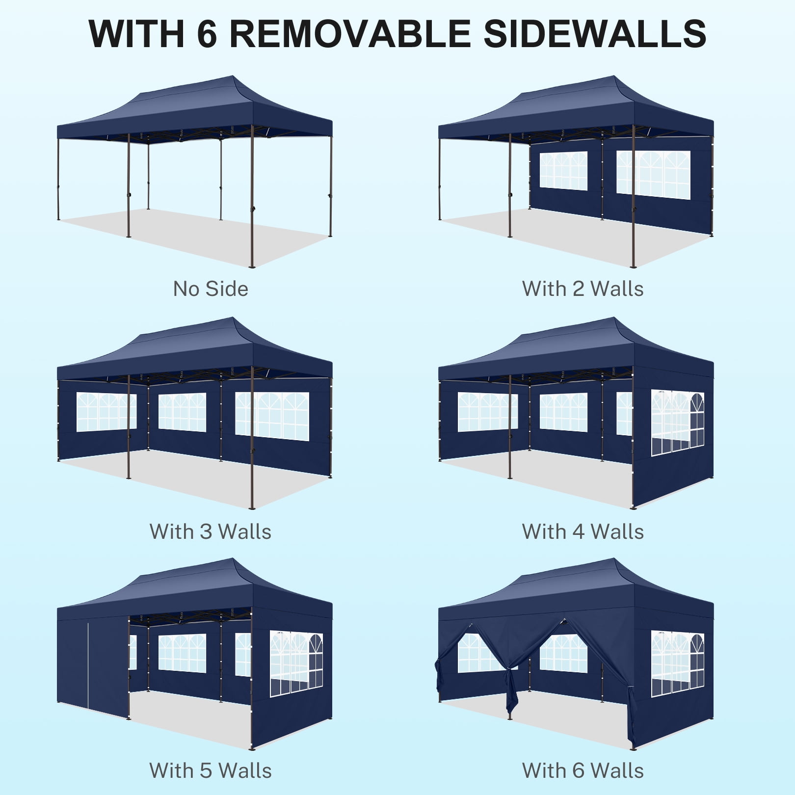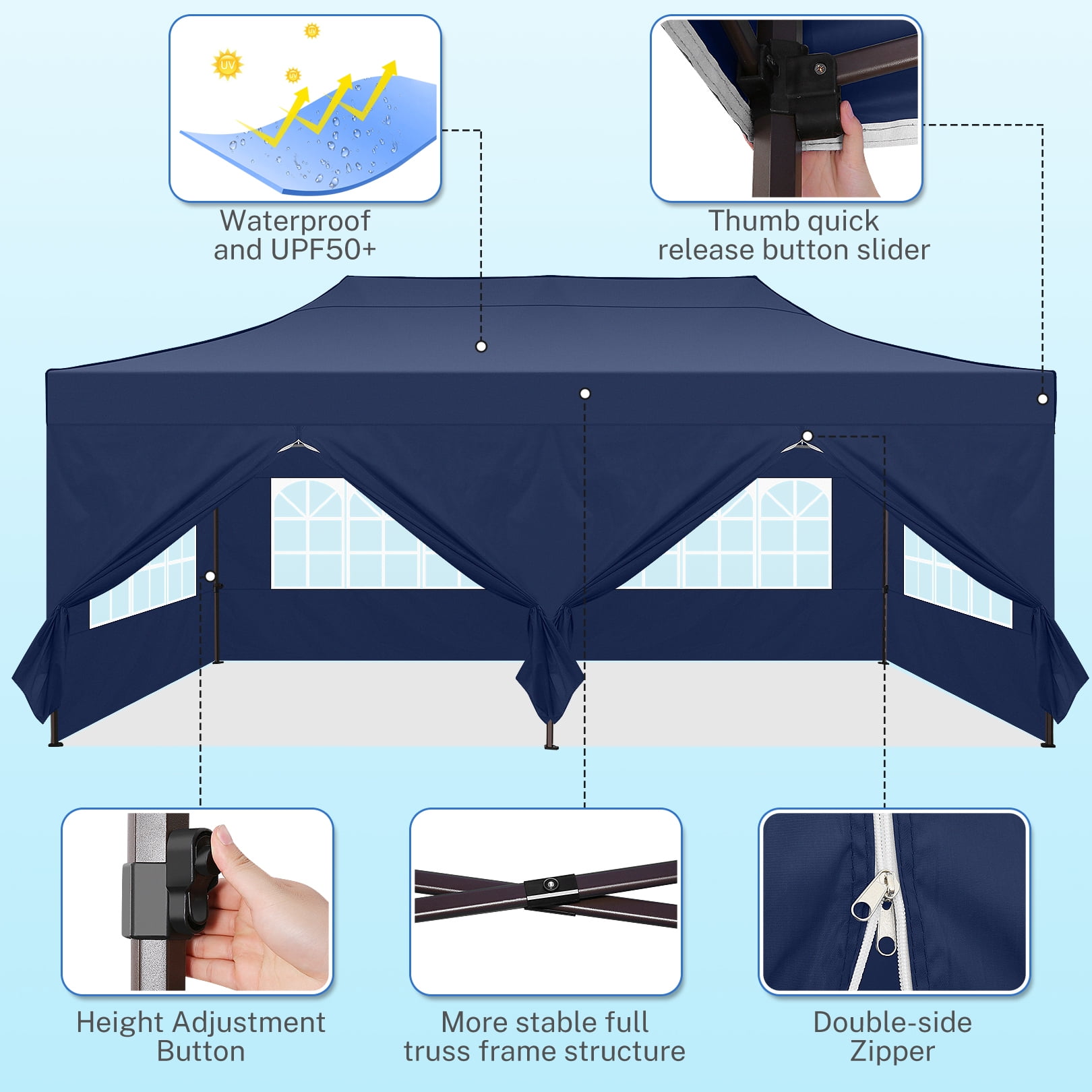 COBIZI 10×20 Pop Up Canopy Tent Heavy Duty with 6 Removable Sidewalls,Commercial Pop Up Tent for Parties All Weather Waterproof Wedding Tent with Roller Bag(Deep Blue)