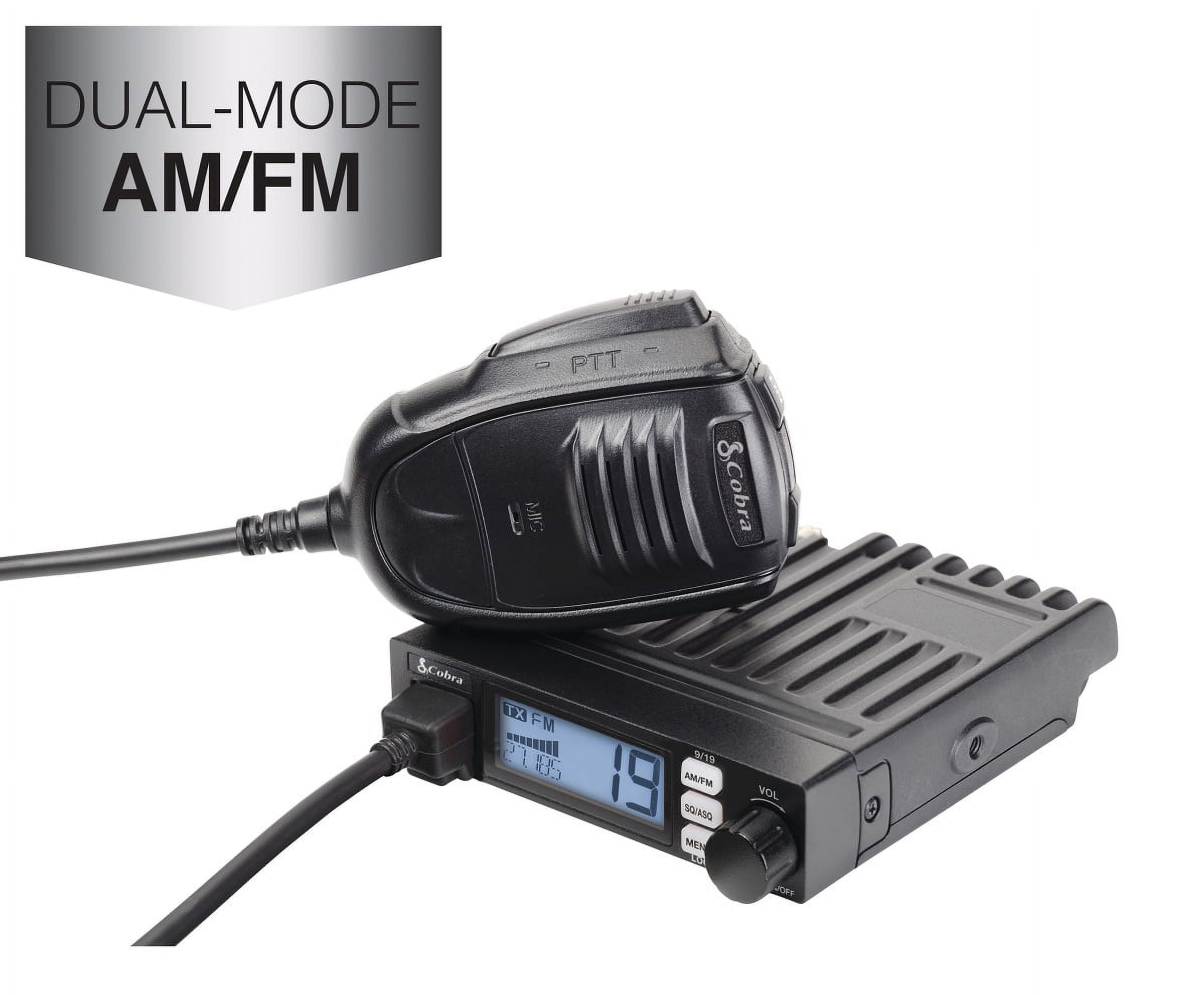 Cobra 19 MINI Ultra-Compact CB Radio with AM/FM Modes Get clear communication anywhere you need it with the ultra compact 19 MINI CB radio, which now includes dual-mode AM/FM or AM-only versions. The 19 MINI CB radio is perfect for RVs, work trucks, delivery vans or wherever you need a full-featured CB in a compact size. The Cobra 19 MINI is our smallest CB radio with all the communication and convenience features you need. Plus, thanks to Cobra’s leadership to enable FM mode usage with CBs used in the United States, you can now choose between dual-mode AM/FM or AM-only versions to communicate with more users with better sound quality! This full-featured CB allows for a direct install or you can power it through your 12V port. VOX CB operation allows you to automatically transmit your voice, hands-free. The Cobra 19 MINI is our smallest CB radio with all the communication and convenience features you need. Plus, thanks to Cobra’s leadership to enable FM mode usage with CBs used in the United States, you can now choose between dual-mode AM/FM or AM only versions. *Please note that this listing is for the AM/FM version. AM Only version is also available. Cobra Electronics is a 50-year old global brand which focuses on mobile communication and navigation products. #1 in US Consumer Market with majority market share.