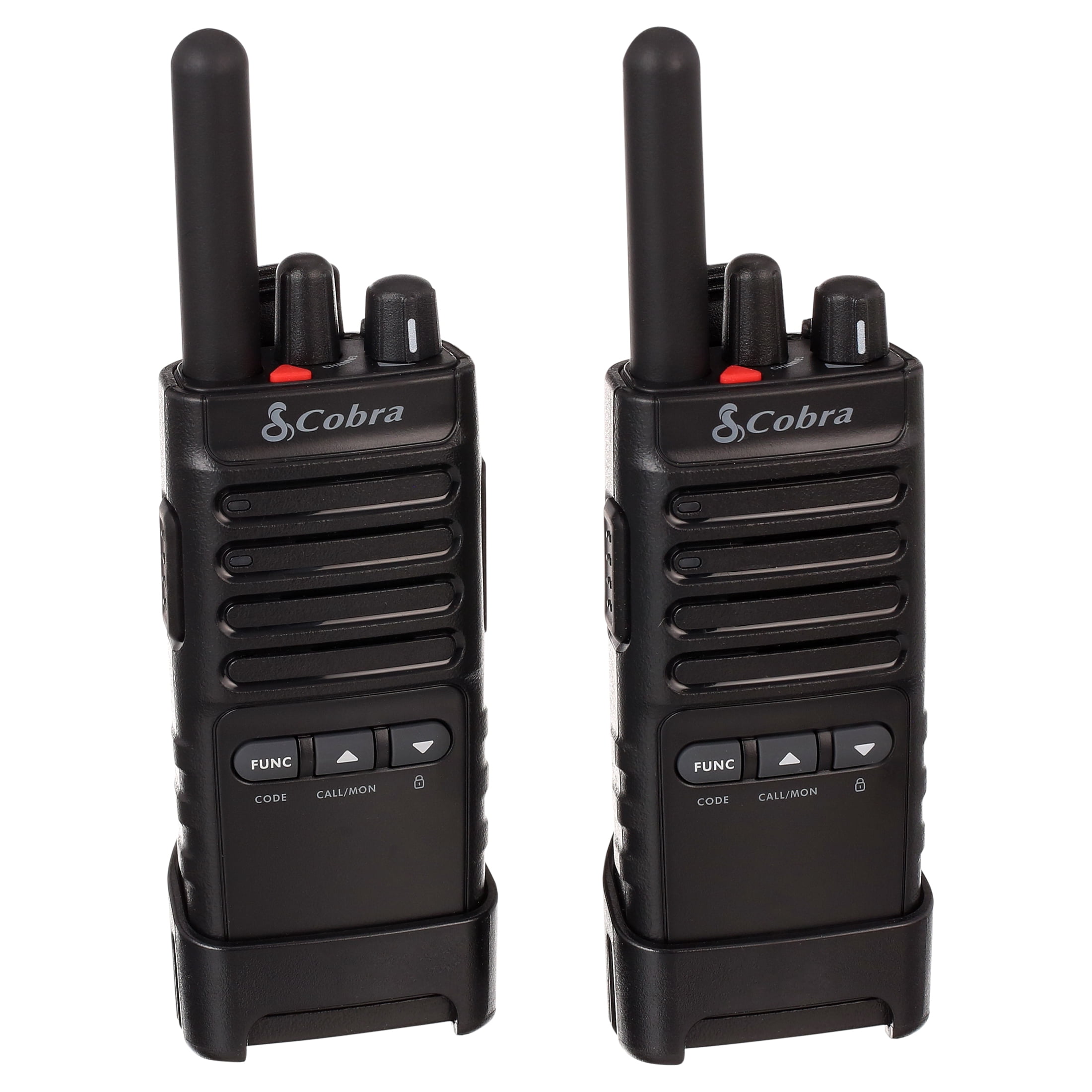 Cobra PX655 PRO Business 2W FRS Walkie-Talkies: 2-Pack Introducing the new Cobra PX655 PRO Business 2W FRS Walkie-Talkies, a top-tier communication solution designed to elevate your business operations. The PX series, Cobra’s latest innovation, offers seamless communication without the hassle of licensing or service fees, making it perfect for retail, food and beverage, hospitality, event management, warehouses, and offices. With a robust range of up to 300,000 square feet or 25 floors, and an extended range of up to 42 miles, the PX655 PRO ensures reliable connectivity in diverse environments. The radios feature 22 channels and 2662 channel combinations with preset privacy codes to minimize interference, providing clear and secure communication. Designed for ease of use, they include dedicated channel and volume/power knobs, a front Push-to-Talk button, and a 360-degree swivel holster. Enjoy hands-free operation, up to 18 hours of continuous usage, and waterproof IPX4 certification, making these walkie-talkies durable and user-friendly. Plus, they’re expandable to an unlimited number of users, offering unparalleled flexibility for your growing business needs. Cobra Electronics is a 50-year-old global brand that focuses on mobile communication and navigation products. #1 in US Consumer Market with majority market share.