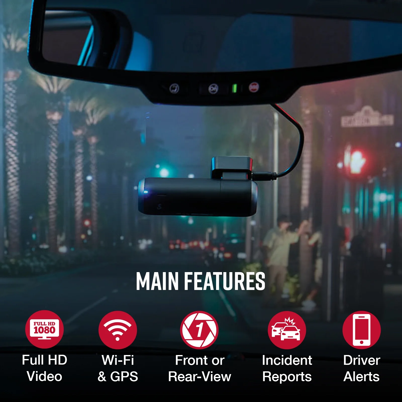 APPLE CARPLAY® & ANDROID AUTO® COMPATIBLE: Easily view your route and interact with alerts on your CarPlay or Android Auto compatible display. Increase your focus on the road ahead, and have control over your alerts without fumbling for your phone. FULL HD VIDEO (1080p): Setup your SC 100 Dash Cam to record the road in crystal-clear Full HD (1080P) video resolution. The discreet design takes up minimal space in your car. Place the SC 100 in the front or rear view of your vehicle. BUILT-IN WI-FI & GPS: Built-in WiFi allows you to instantly store, edit, and share footage from anywhere with Cloud Based Video Management. Embedded GPS syncs location and speed information to ensure you have critical information when you need it. MAYDAY ALERTS: Emergency mayday will send your emergency contact an automatic text message in the event of a serious accident. EASY INSTALL AND OPERATION: An 8GB MicroSD Card, quick release magnetic mount, and a vehicle power adapter allows you to simply mount, power, and drive. The sleek design including automatic recording and shutdown lets you set it, and forget it. COMPATIBLE ACCESSORIES AVAILABLE