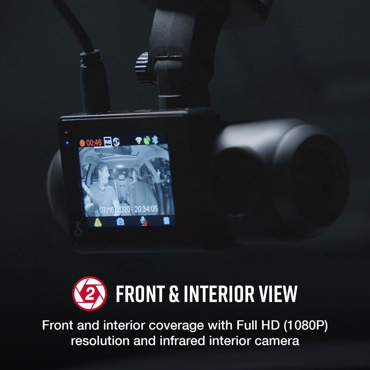Cobra SC 201 1080P Dash Cam + Interior Night Vision Cam, Live Alerts, CarPlay Compatible Dash Camera