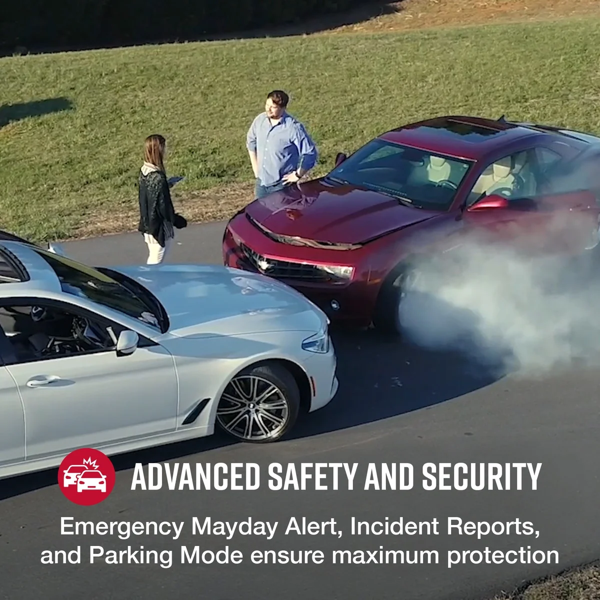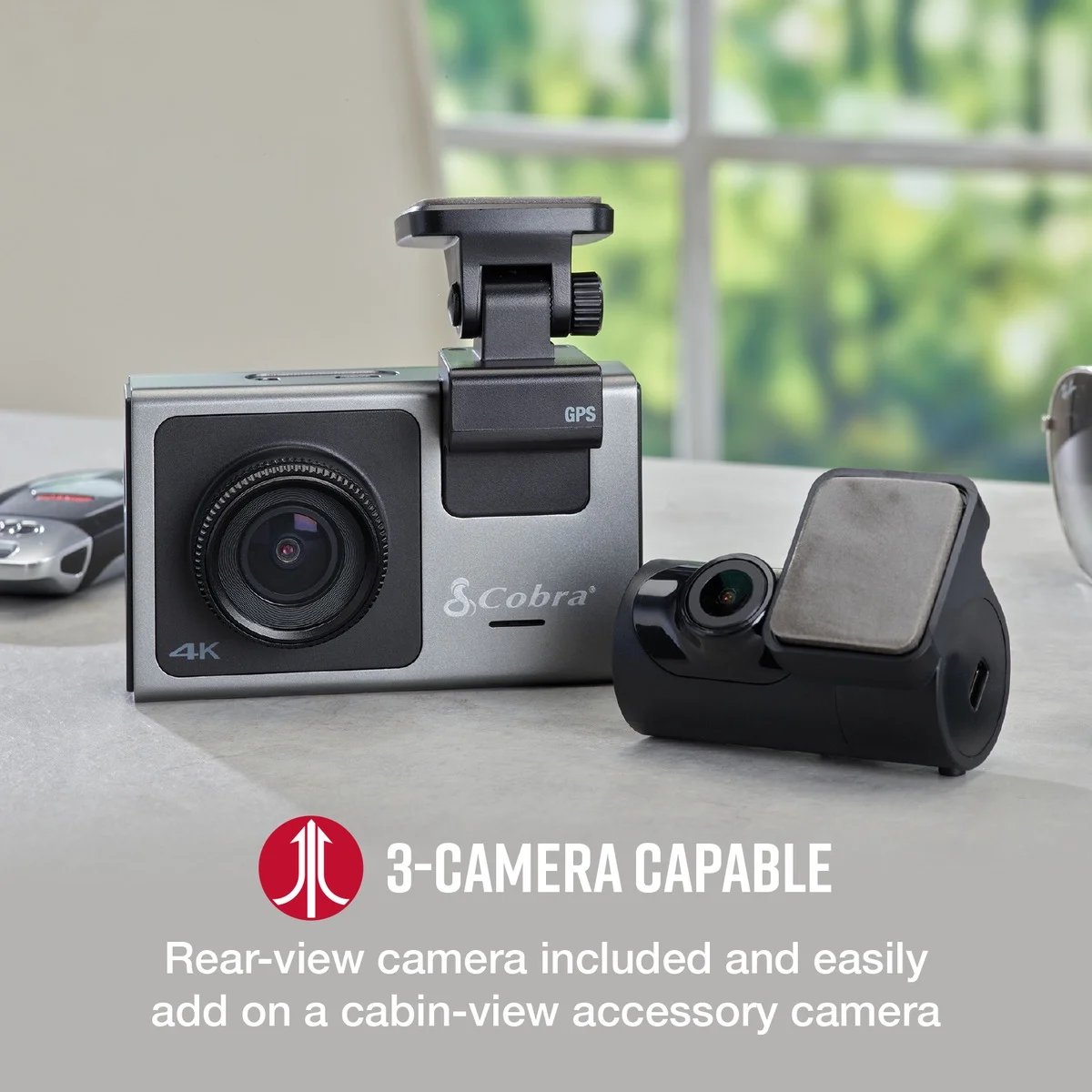 UHD VIDEO (4K): With Ultra HD 4K resolution, you’ll get 4x the pixel resolution of 1080P, so you can see and capture every detail on your drive. Includes new rear-view accessory camera to see the front and rear of your vehicle, day, or night. 3-VIEW CAPABLE: Includes front-facing SC 400D dash cam and a rear-facing accessory camera to provide dual-view capability. Add on an optional cabin-view accessory camera to record the road ahead, behind, and inside the vehicle at the same time. REAL-TIME DRIVER ALERTS: Get notifications of red light camera and speed camera locations, police activity, and many more alerts from the nationwide community of drivers APPLE CARPLAY® & ANDROID AUTO® COMPATIBLE: Easily view your route and interact with alerts on your CarPlay or Android Auto compatible display. Increase your focus on the road ahead, and have control over your alerts without fumbling for your phone. LIVE POLICE ALERTS ON-SCREEN: Get exclusive live police alerts on-screen with the Cobra SC 400D. Cobra SC smart dash cams are the only products that show exclusive live police alerts like radar speed zones, speed camera locations, and more. HEADS-UP NAVIGATION: Drive safer with on-screen notifications to upcoming turns, even if your map is running in the background on your phone. Making the perfect car accessory for ensuring you get to your destination on time. 3-VIEW CAPABLE: Includes front-facing SC 400D dash cam and a rear-facing accessory camera to provide dual-view capability. Add on an optional cabin-view accessory camera to record the road ahead, behind, and inside the vehicle at the same time. VIRTURAL ASSISTANCE BUILT-IN: This dash camera comes with Virtual Assistance built into its system. From playing music in your car to navigating or finding restaurants, our Virtual Assistant is ready to help answer any question or request while you’re on the road.