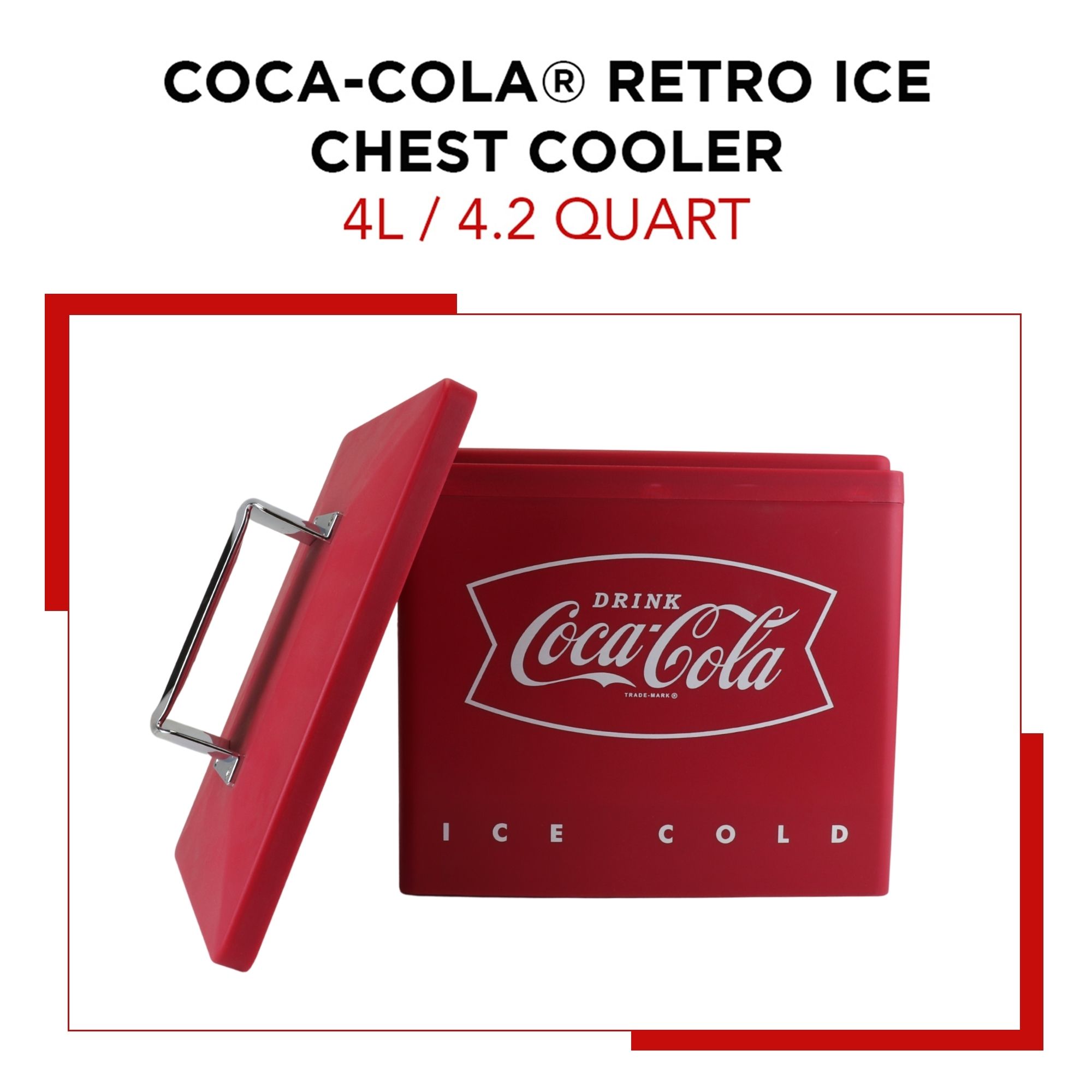 Coca-Cola 4.2 qt. Hard Sided Ice Chest Cooler, Red and Silver