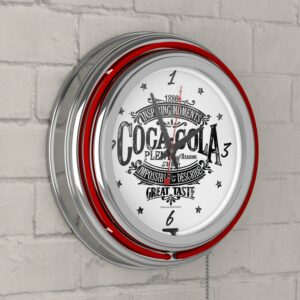 – QUALITY CONSTRUCTION – The clock features chrome finished resin housing and a high-grade glass clock face cover. The neon runs off the included AC adapter, while the battery-operated quartz clock mechanism will keep it ticking for a long time.