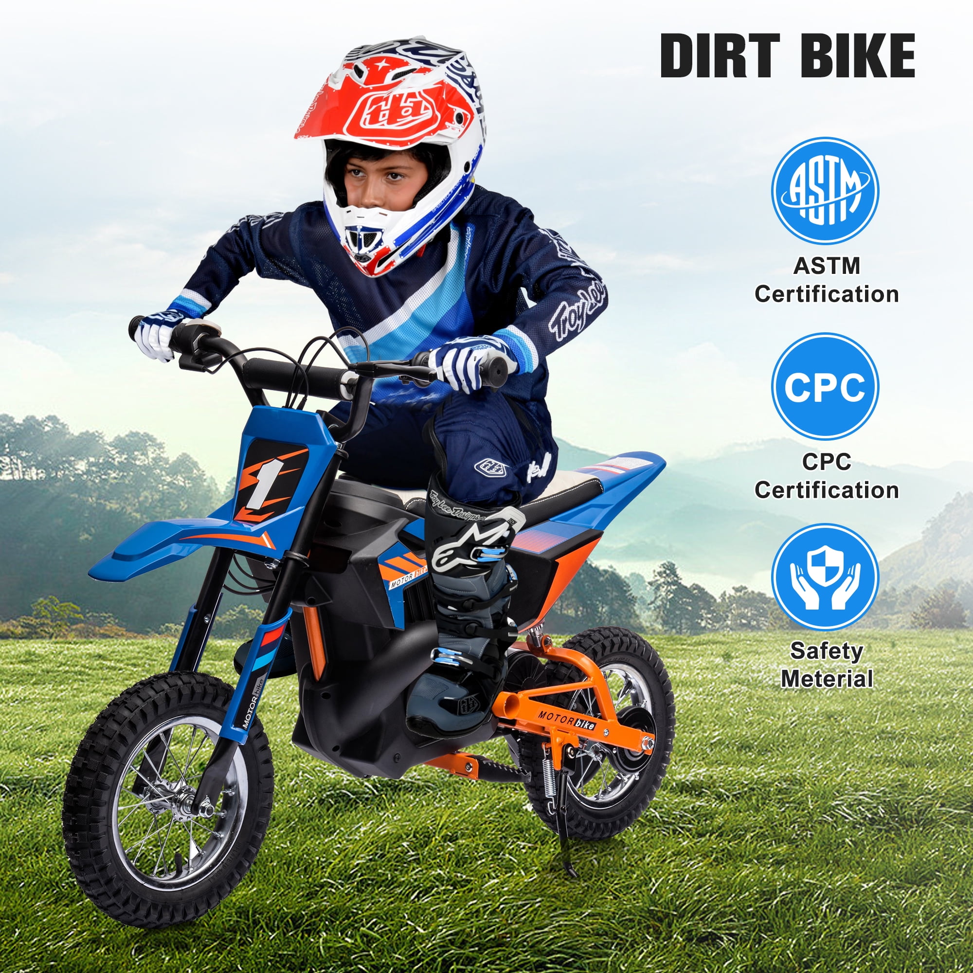 【Powerful Performance】- This kids dirt bike is equipped with 24V powerful engine & 250W silent motor which can provide more constant & stable power in any condition, the maximum load capacity can reach 132 LBS. Electric motorcycle designed for kids with authentic dirt bike geometry provides for solid riding and comes with 7AH large batteries, so it can use up to 30 minutes even under full load and top speed conditions. 【Realistic Riding】 – This electric motorcycle has a maximum speed of 13.67 MPH (22 KM/H), and the kids can control the speed by twisting the accelerator with the right hand, and the left hand is responsible for the brake. Equipped with a high-strength shock-absorbing spring and hydraulic shock fork, which has super shock-absorbing capacity. A larger suspension makes the rider more comfortable. 【Safe Performance】- With federal safety standards in mind, made of a sturdy metal frame, eco-friendly PP material, comfortable PU leather seat, and 12-inch non-slip rubber wheel, it is suitable for kids above 13 years since it is certified by CPC. The Motorcycle also comes with precise brakes, and metal suspension to fully protect the kids’ safety. 【Easy To Assembly】- The ride on car assembly is straightforward and simple according to the detailed instructions. Note: 1. Please kindly check the product size before purchase, as some children grow up faster. Not for use on public roads. 2. This product is suitable for children aged 13 or above. 3. Driving time depends on rider weight and road conditions. 【Top Service】- UHOMEPRO INC provides professional customer service both before and after your purchase; If you have any questions about our ride on car, feel free to contact us. Our professional customer service team will provide you with solutions within 24 hours. (Customer Service Email: [email protected])