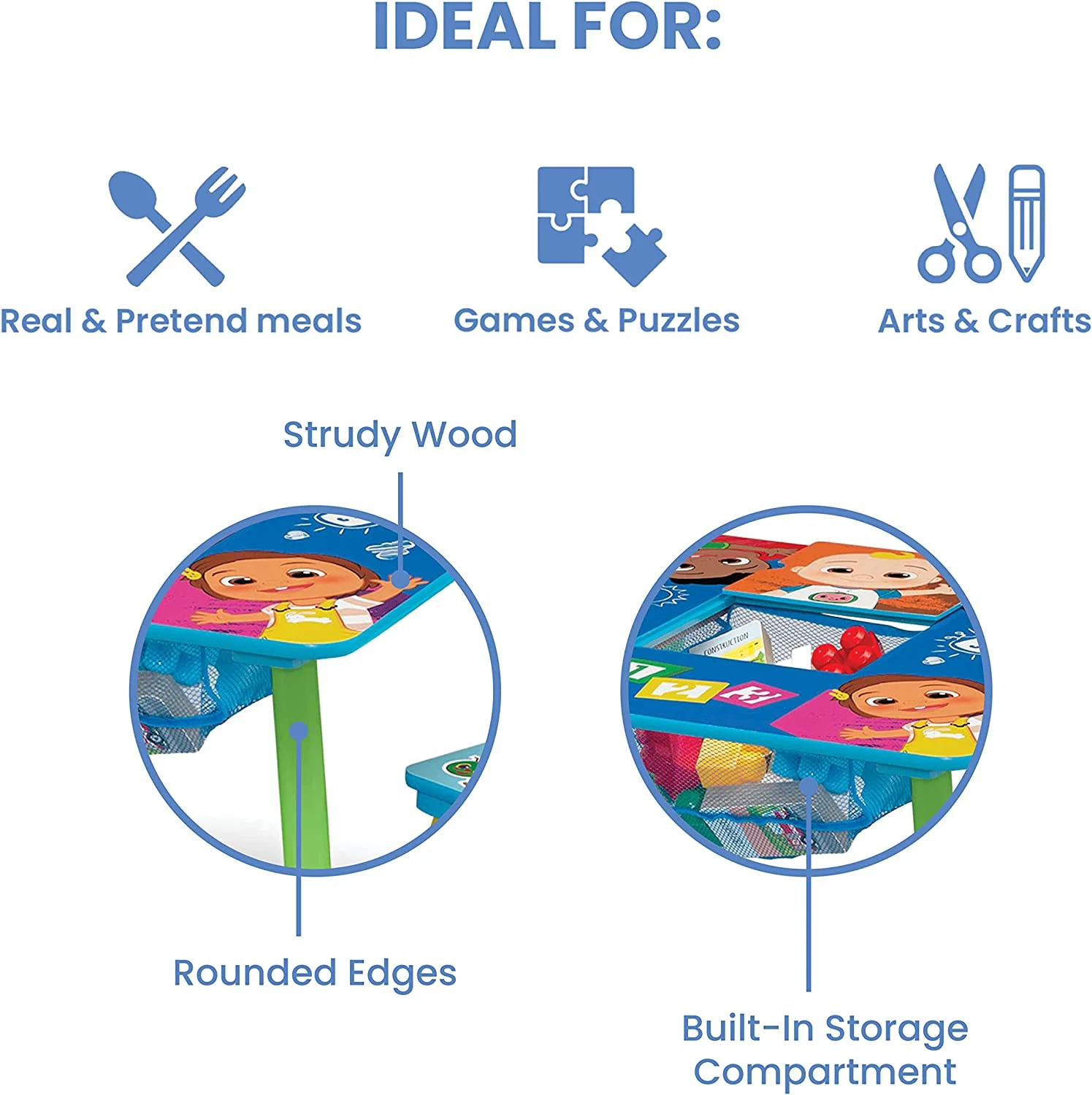 CoComelon Table and 2 Chairs with Storage Set by Delta Children, Greenguard Gold Certified, Toddler