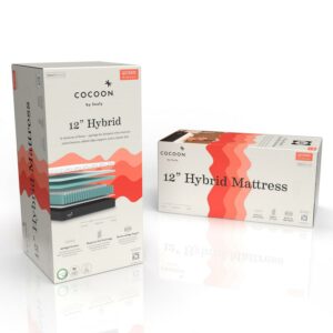 Transform your room with a Cocoon by Sealy 12″ Medium Hybrid Mattress in a Box. Enjoy premium gel memory foam and supportive fabric coils that allow for increased airflow, limit motion transfer, and provide a core support layer powered by Active Support Technology. The Quantum Edge steel perimeter provides reinforced edge support, helping your mattress feel larger and making getting up even easier. This hybrid mattress accomodates all adult sleepers. The soft stretch-knit cover comes with Surface-Guard Technology , made with spun poly fibers. It is breathable, allowing you to feel the premium mattress s proper support and comfort benefits. The mattress comes with Moisture Protect and can be spot-cleaned and air-dried. Rest easy on your new Sealy mattress.