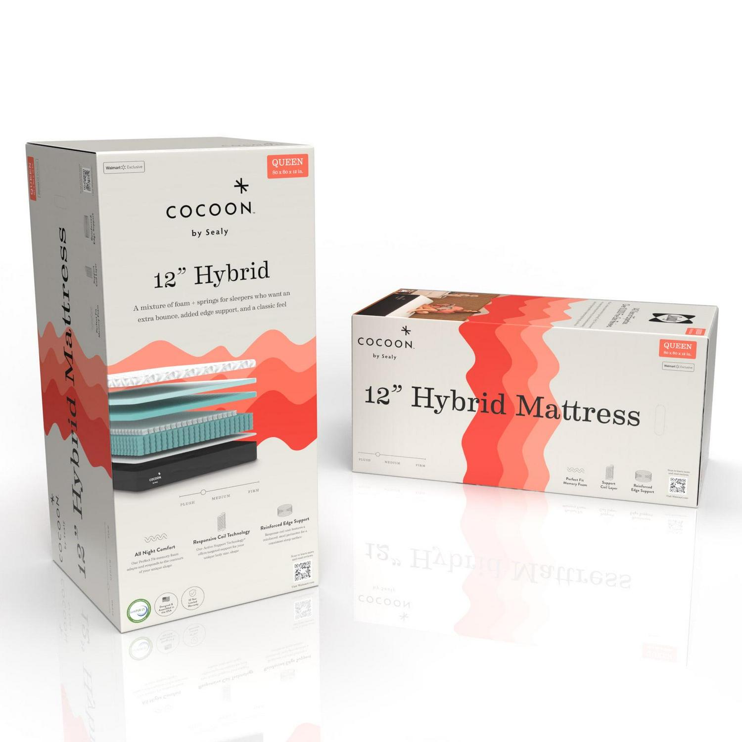 Cocoon by Sealy 12a Medium Hybrid Mattress in a Box, Adult, Queen