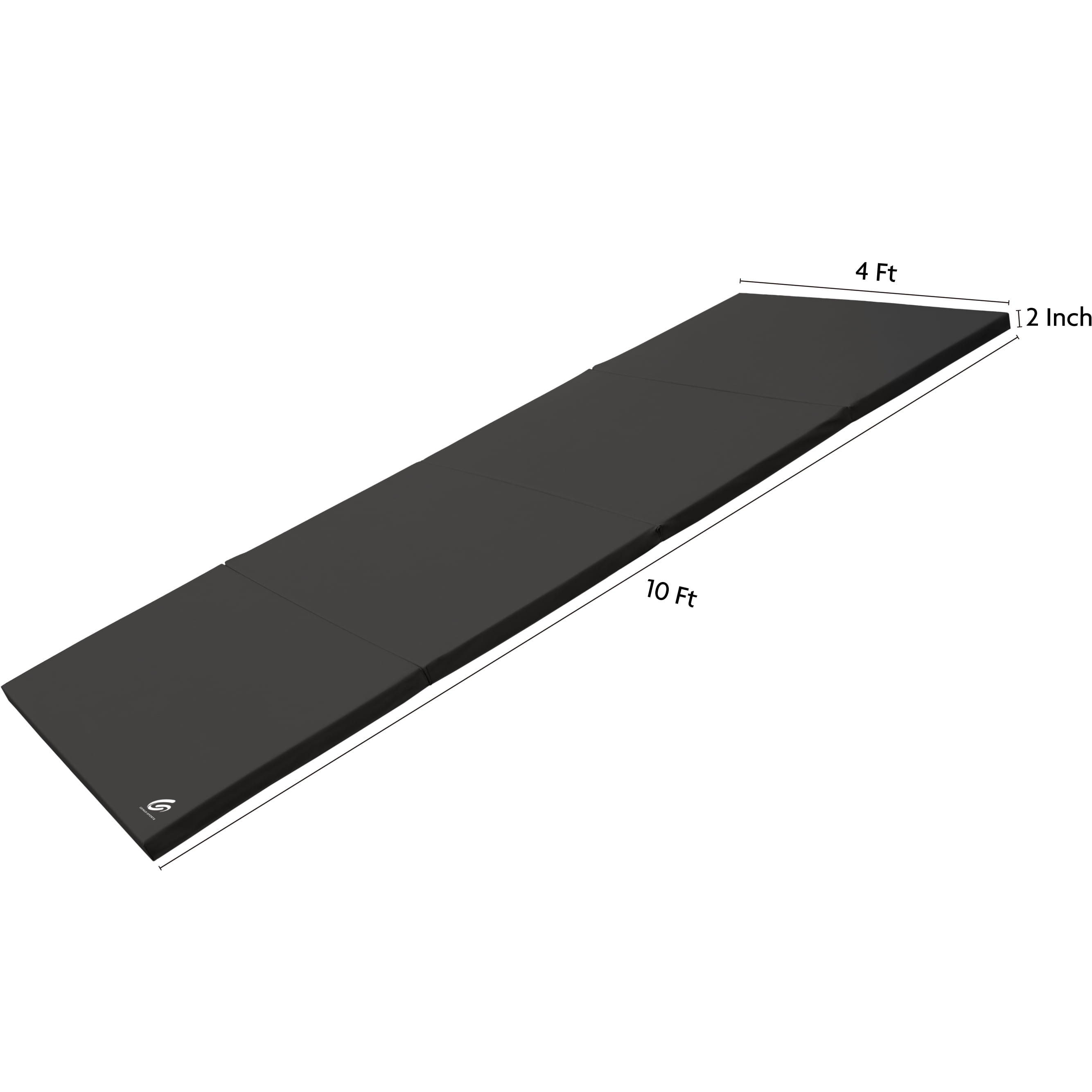 Coinus Sports 4-Panel Folding Gymnastics Exercise Mat with Handles, 4′ x 10′ x 2″, Black