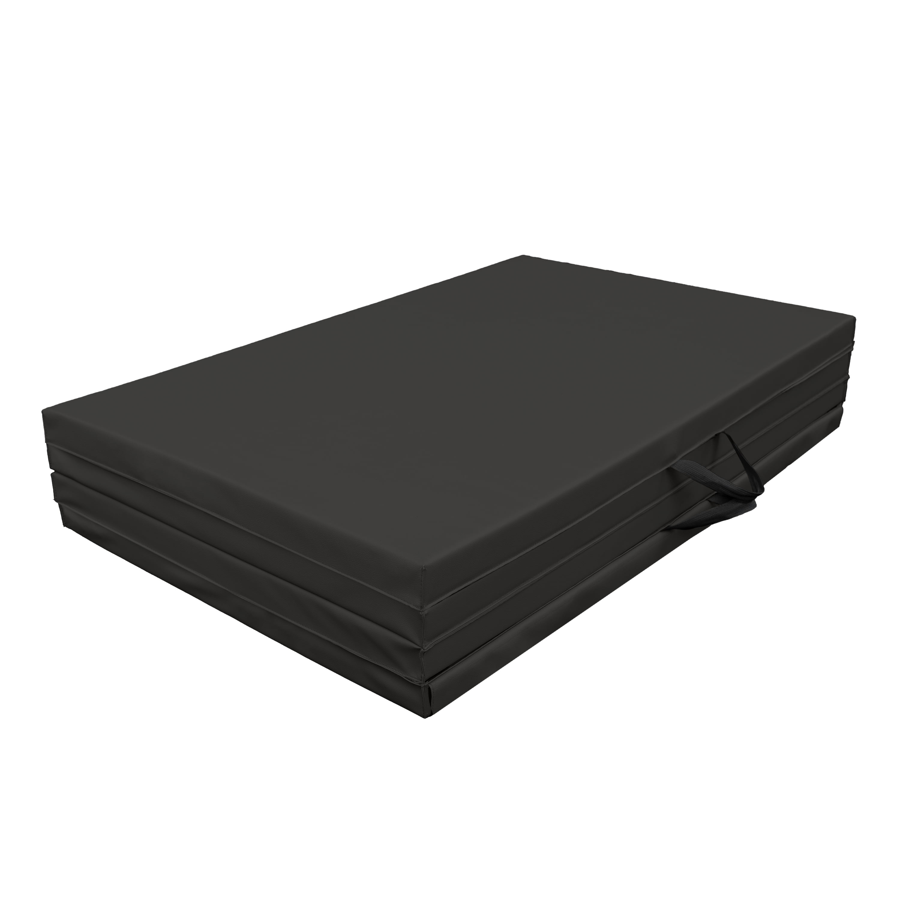 Tumble into your workout routines with confidence with the Coinus Sports 4-Panel Gymnastics Mat in classic black. Whether you’re stretching, working out, tumbling, or practicing martial arts or yoga positions, this versatile exercise mat will be the perfect addition to your home gym, studio, garage, or wherever you desire to work up a sweat. The portable 4-fold design and attached handles allow for easy transportation so you can exercise anywhere on the go, and the mat’s folded profile offers neat, compact storage after training. Made with a thick 2″ PVC and polyethylene foam, you can confidently jump right into your flips and turns knowing that this ultra-cushioned, durable tumbling mat will be there to support your lands and soften your falls. This folding gym mat measures 4′ x 10′ x 2″ when expanded to offer plenty of space for all your fitness needs. Assembled product weight: 12.48 lbs.
