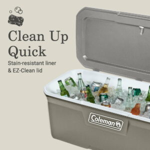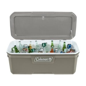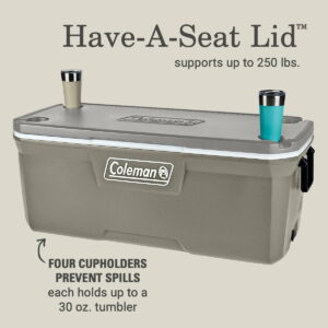 Inspired by our Wichita roots and the people who work there, the Coleman 316 Series of hard coolers brings uncompromising quality and a legacy of craftsmanship and adventure wherever you take them. Food and drinks stay chilled longer with the Coleman 316 Series 150-Quart Hard Ice Chest Cooler, Silver Ash, which Keeps the Ice up to 5 days. Carrying a full load Enjoy easier lifting with the swing-up side handles, then have a seat on the closed lid. Not to worry, cup holders built into the lid will keep your drink close and prevent spills. With room to hold up to 124 cans with 82 lbs. of ice, there’s sure to be plenty of refreshments to go around at barbecues, tailgate parties, or camping trips.