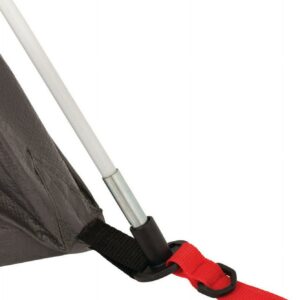 – Fast Pitch system with pre attached, color coded poles and hub, fast fit feet, and snag free Insta Clip suspension