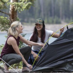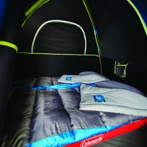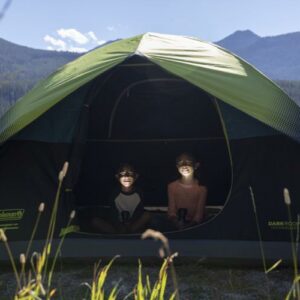 Set up camp in the compact yet roomy Coleman 4-Person Sundome Dark Room Dome Camping Tent with Easy Setup, Dark Gray. Dark Room technology blocks 90% of sunlight so families can put the kids to bed early and festival goers can sleep in past sunrise; it also reduces temperatures in the tent, letting your group enjoy a comfortable night’s sleep. If it rains, this tent is guaranteed to keep you dry thanks to the WeatherTec system, which uses a tub-like floor with patented corner welds and protected seams to help keep water out. You’ll get even more weather protection from a door awning and an included rainfly. Meanwhile, the compact dome shape and strong frame have been tested to withstand 35+ mph winds. Two windows increase air circulation to help you stay cool and comfortable. Setup is simple with snag-free, continuous pole sleeves, a patented pin-and-ring system, and a snag-free Insta-Clip suspension. Inside, comfortably fit 1 queen-size airbed, neatly stash small items in mesh storage pockets sewn into the walls, and conveniently bring in electrical power with the E-Port feature. When it’s time to head home, the tent easily packs up into an expandable carrying bag until you’re off on your next adventure.