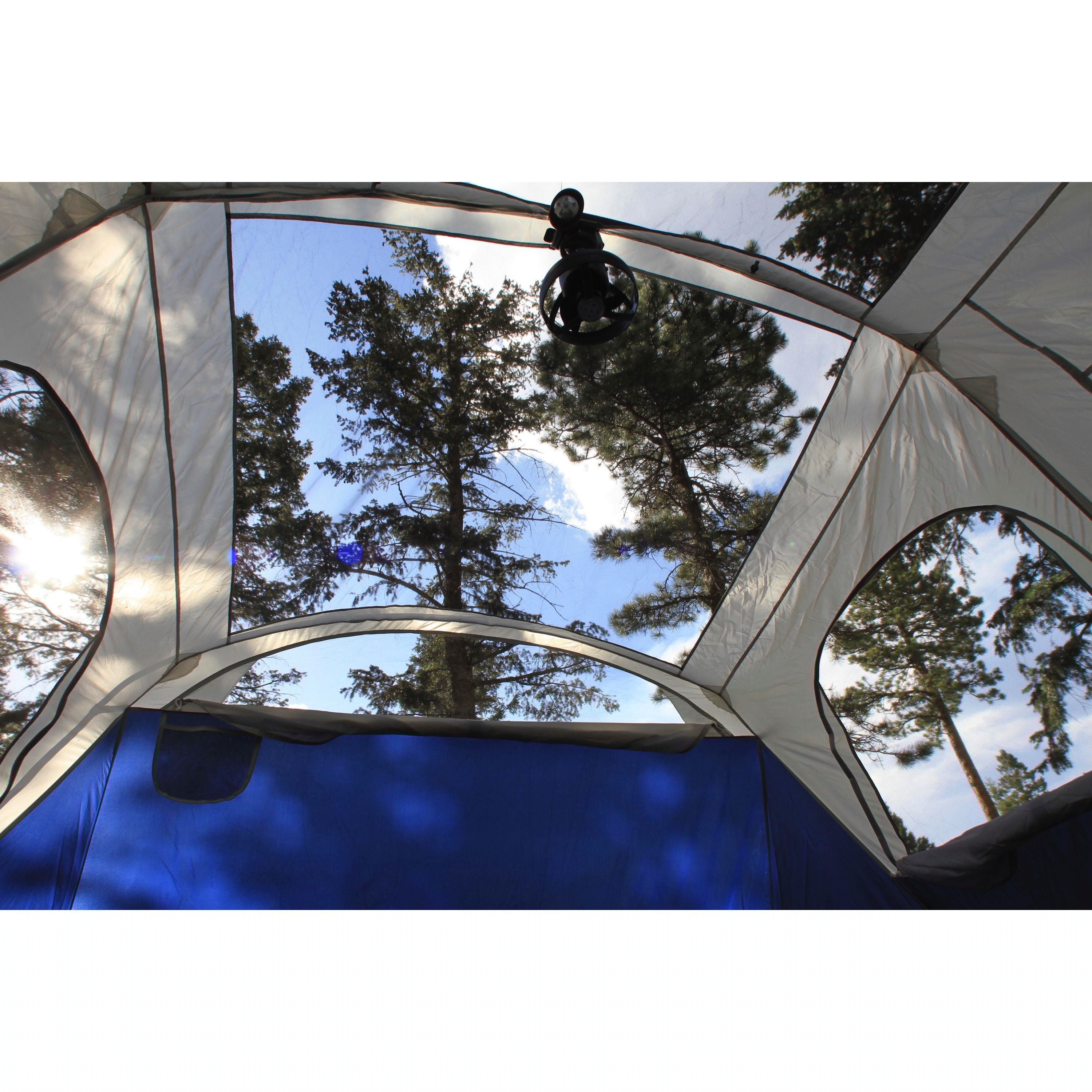 - Spacious interior that fits 2 queen air beds, sleeps 6 people, and has 3 rooms