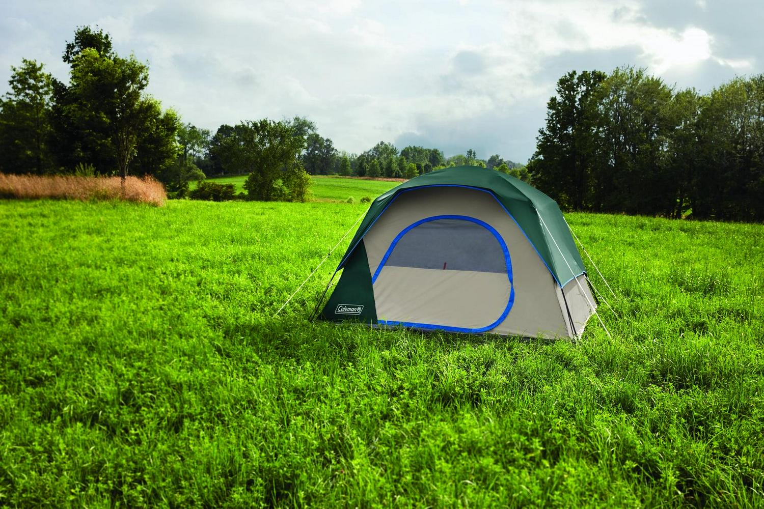 With a quick setup under 5 minutes, the Skydome Camping Tent lets you enjoy more time with friends and family on your next camping trip. There is plenty of room to stretch inside the spacious interior thanks to the nearly vertical walls that offer 20% more headroom than a traditional Coleman dome tent. Plus, a wide door design means you can move air beds, sleeping bags, and other gear in and out with ease. Downpour in the forecast Not to worry, the WeatherTec system’s welded corners and inverted seams help keep you and your gear dry. Skydome tents are available in a range of sizes (2-person, 4-person, 6-person, or 8-person), with or without Dark Room technology.