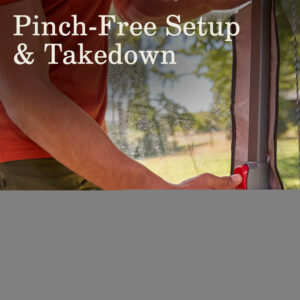 – Comfort Grip features pinch-free buttons that lock the poles in place for easy setup and takedown