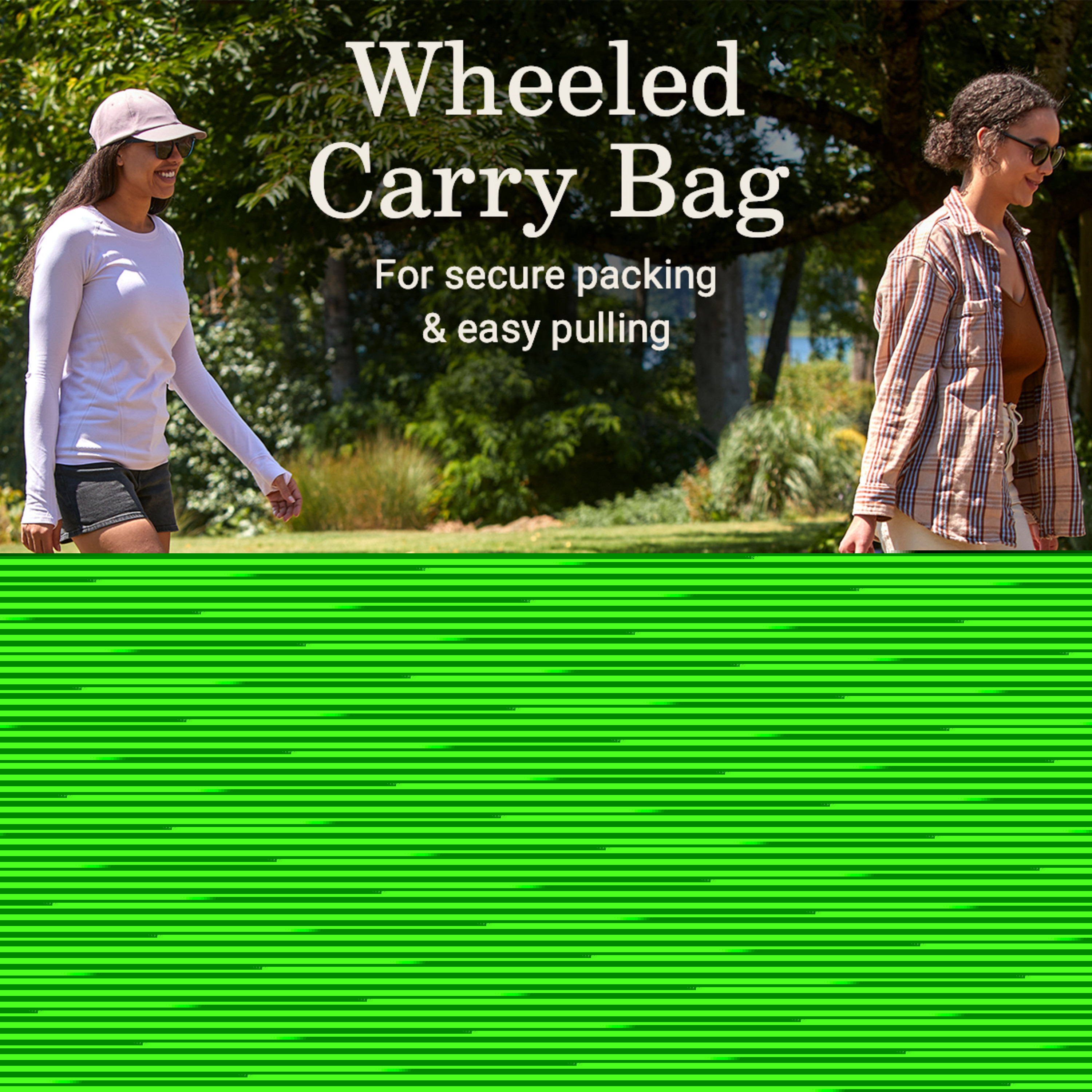 – Wheeled carry bag includes straps for secure packing and easy pulling