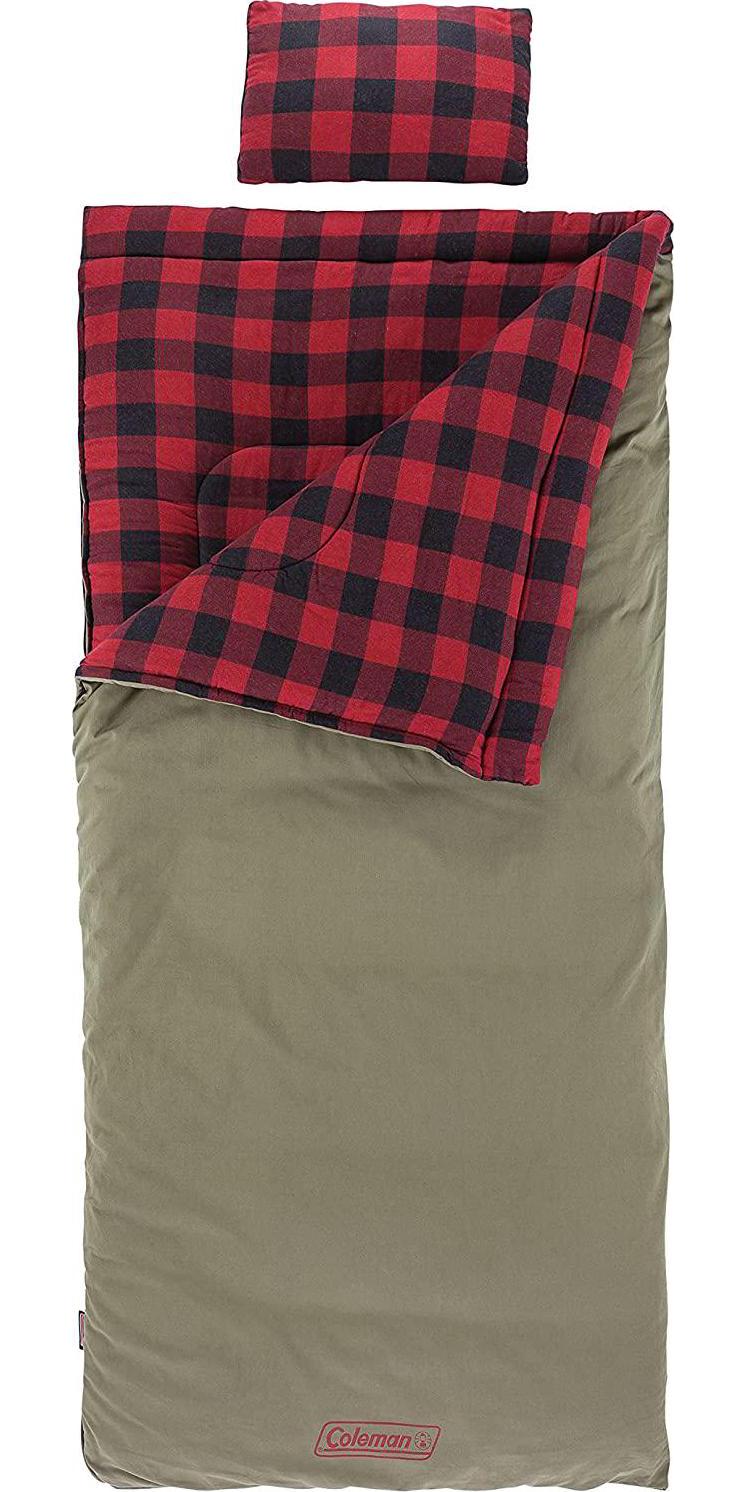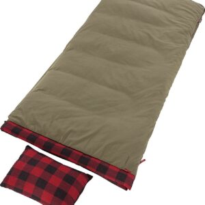 Sleep comfortably under the stars in the Coleman Big Game Big and Tall -5 Degree Sleeping Bag, Plaid Red, even when the temperature drops to -5 °F outside. The full-cover construction locks in the heat by eliminating quilting cold spots, making it perfect for extreme weather sleeping. You’ll stay comfy with lightweight Coletherm hollow polyester insulation and the Thermolock draft tube helping to keep your body heat in the bag. The soft flannel lining and pillow gives you extra warmth and comfort from head to toe, while the Comfort Cuff design makes sure you only have soft fabric around your face while you sleep. Thanks to the ZipPlow zipper, you’ll get snag-free opening and closing every time. A durable, cotton canvas cover will ensure you get to use this extra-warm bag season after season. Stash a few small things, such as gloves or a flashlight, in the exterior tuck pocket. Packing up is made easy with the Wrap ‘N’ Roll system, which lets you roll your bag right up into an attached cover.