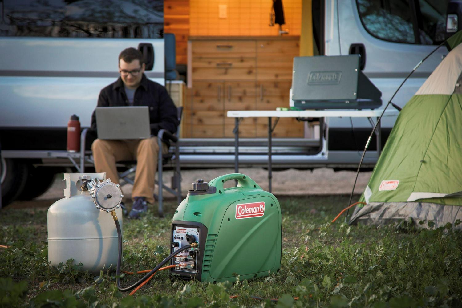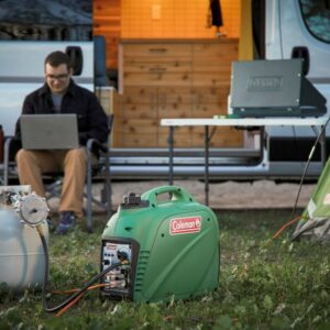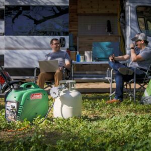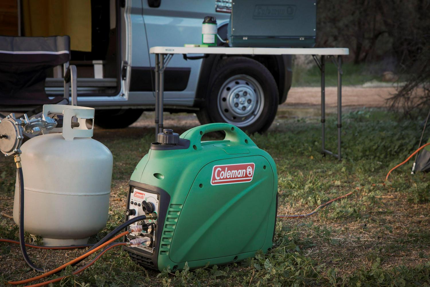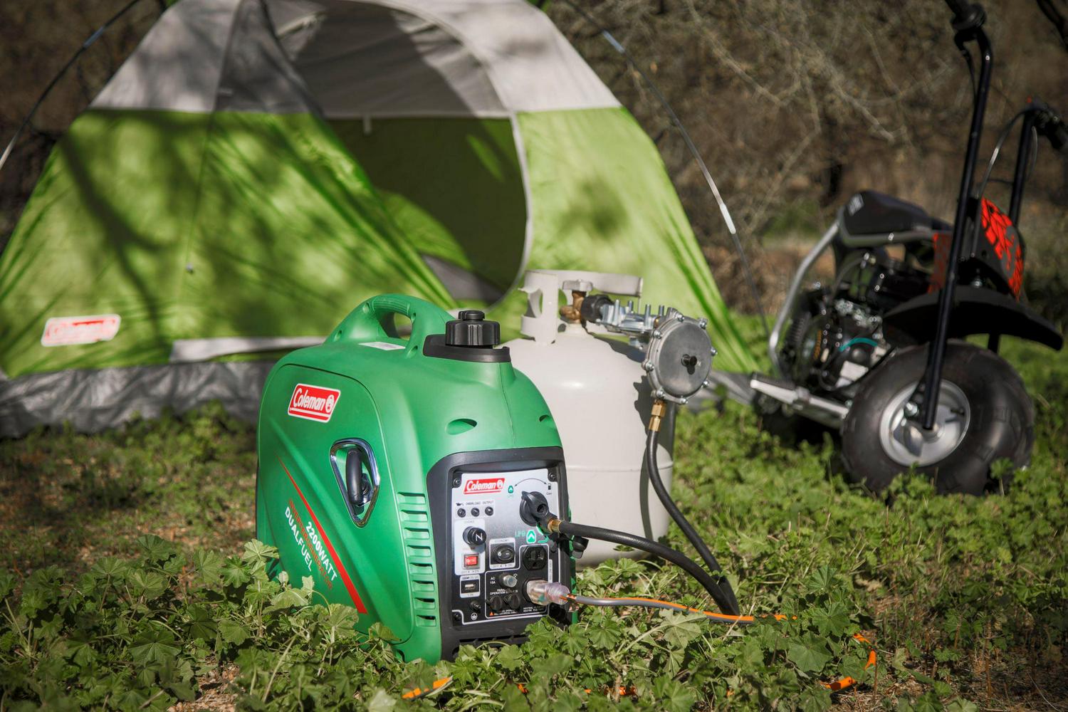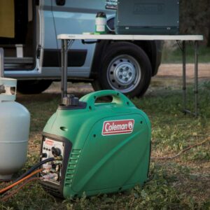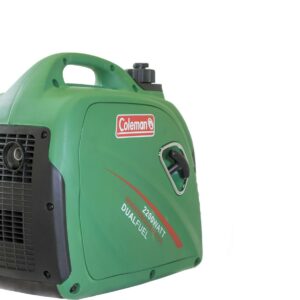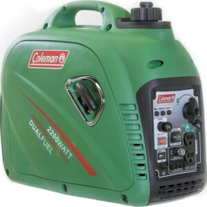Introducing the New Coleman’s Dual Fuel DF220 2200W Inverter Generator, a portable and efficient generator that will fit many of your power needs. Its single cylinder, 4-stroke, OHV Air-Cooled engine delivers clean power up to 2,200 peak watts/1,800 running watts. With parallel capabilities, it is easy to connect two DF220 generators to increase power output while still having the advantage of carrying around a smaller unit. Having the benefit of dual fuel allows the generator to be powered by either unleaded gasoline or propane, making it perfect for your family s outdoor adventure, as well as in case of emergencies. Whether charging your cell phone, or keeping your refrigerator running, Coleman s DF220 generator will keep you going when the grid can t.