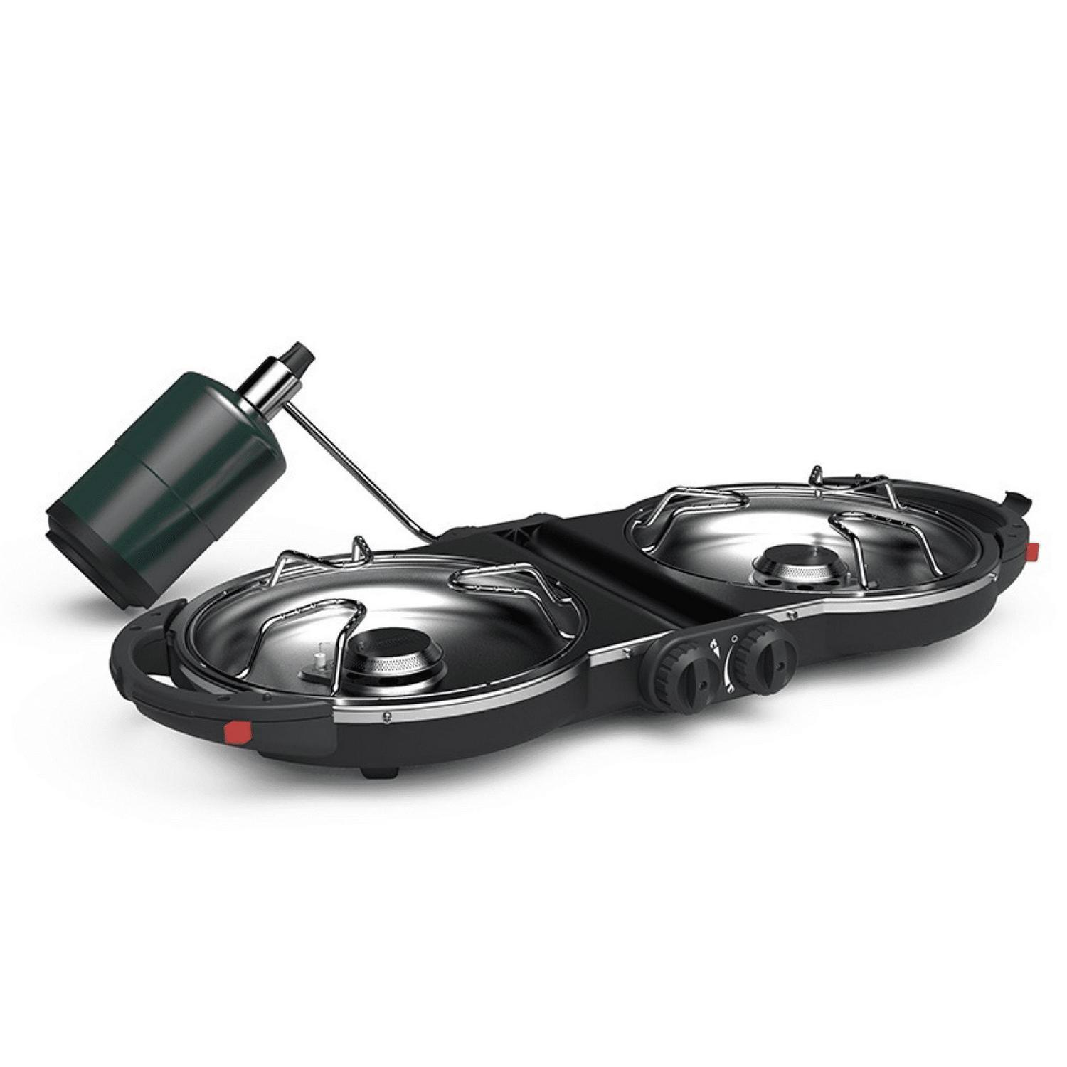 Hit the road with the Coleman Fold N Go Propane Portable Camping 2 Burner Stove, Black, which makes it easy to cook great meals outdoors. This camping stove is perfect for those times when trail mix just won’t cut it. Its compact, foldable design makes the stove easy to move, and its removable chrome-plated grate makes cleanup quick. The best part This stove’s 2 independently adjustable burners have 20,000 total BTUs of cooking power and a push-button Instastart ignition for automatic, matchless lighting.