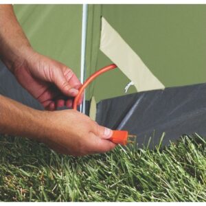 With enough room for three queen size air beds, the Coleman Montana 8-Person Dome Tent lets your whole family enjoy camping trips with extra sleeping space. This camping tent is guaranteed to keep you dry thanks to the Weather Tec system that features patented welded floors with inverted seams. The backpacking tent comes with a rainfly and a covered zipper that help keep water out. An extended door awning creates a dry space to store gear and enter the tent, while the hinged door makes it easy to come and go. The angled windows can be kept open in the rain and help improve air circulation. This 8-person tent is designed with a strong frame tested to withstand 35+ mph winds and durable Bodyguard fabric that will last season after season. It sets up easily in about 15 minutes thanks to snag-free continuous pole sleeves, a patented pin-and-ring system, and snag-free Insta-Clip suspension. And once your trip is finished, you can pack up the tent in the included carry bag for easy storage and transportation.
