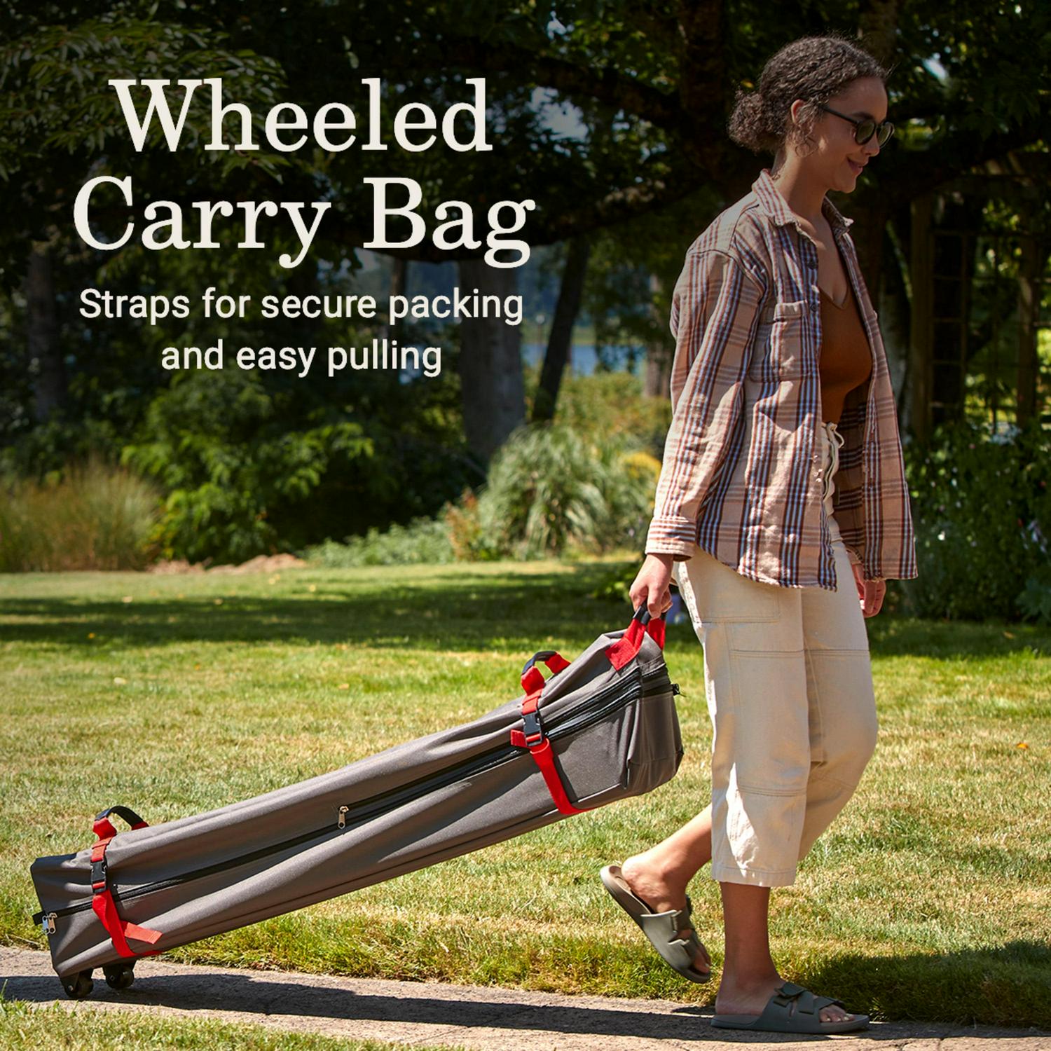 - Wheeled carry bag with straps included for secure packing and easy transport