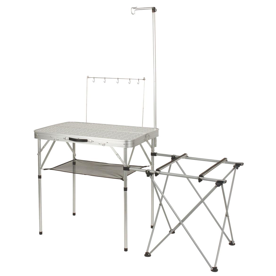 – Side table: 27.8 x 20.5 in. accommodates most Coleman stoves and coolers