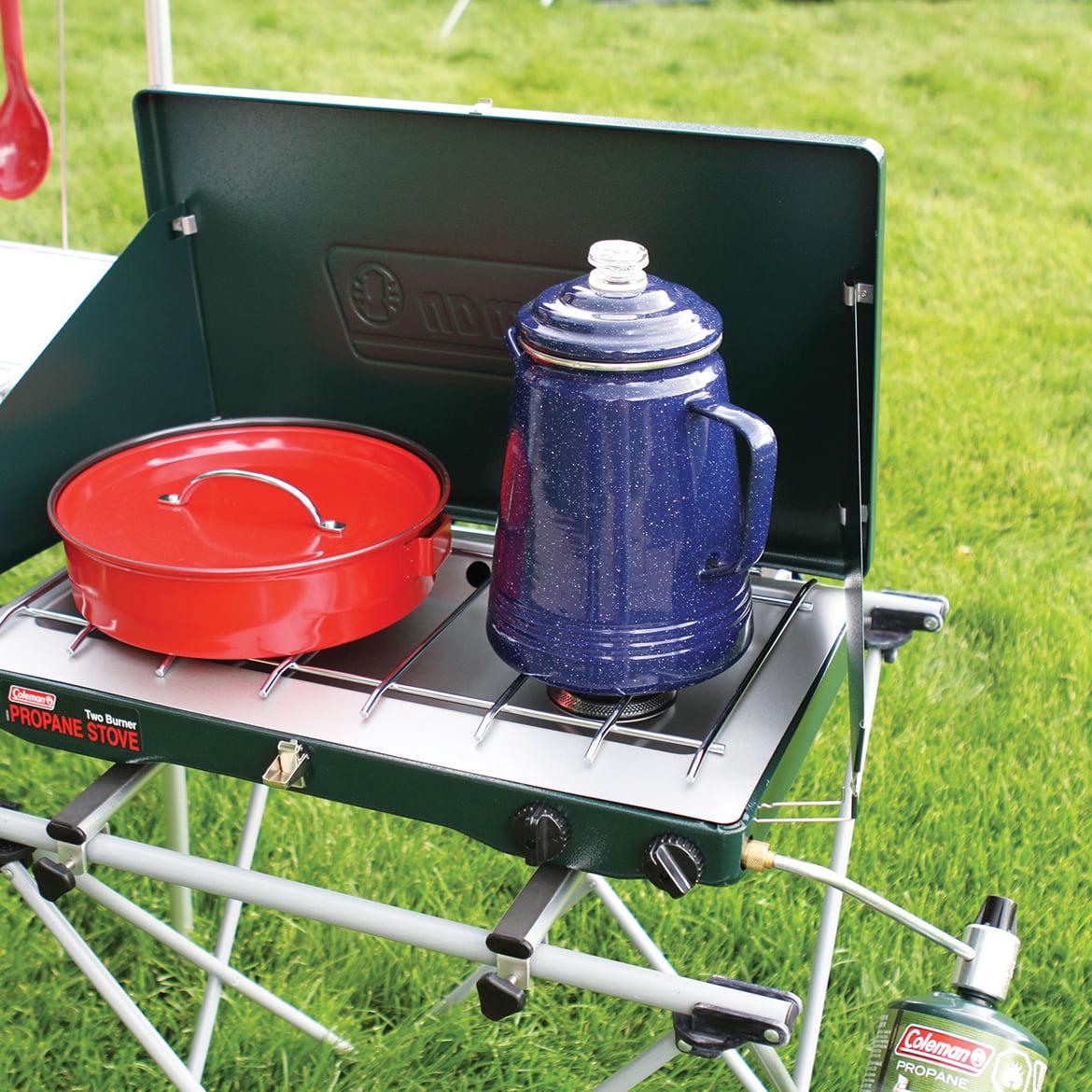- Side table: 27.8 x 20.5 in. accommodates most Coleman stoves and coolers