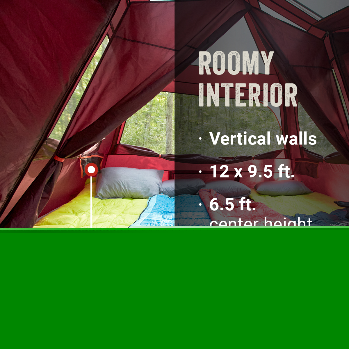 - Wide door makes it easier to move airbeds, sleeping bags, and other gear in and out of the tent