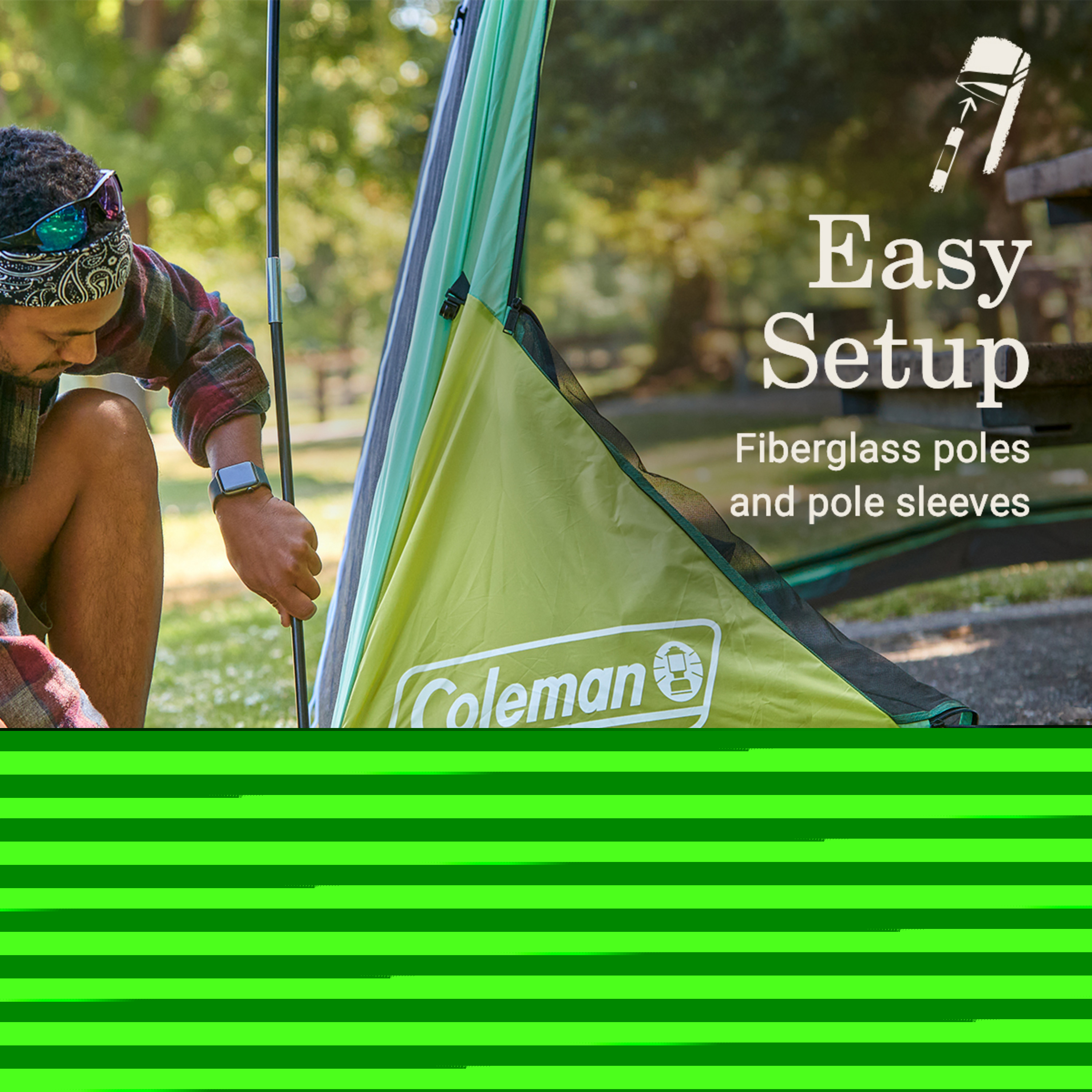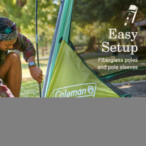 Head outside with the Coleman Skyshade screen dome canopies designed for bug-free lounging at the beach, park, campground, or wherever adventure takes you. The Coleman Skyshade 10′ x 10′ Screen Dome Tent, Moss enclosed mesh walls fit over a picnic table so you can eat outside without the mosquitos or other pests. Plus, the 2 wide doors let you bring gear in and out easily. Setting up is a breeze thanks to fiberglass poles, pole sleeves, and corner pockets that keep the poles in place. The dome features UPF 50+ sun protection to help block sun s harmful UV rays and 2 gear pockets for keeping small items organized. Weighing only 13.4 lbs., the dome s lightweight and compact design is easy to transport when it s time to go.