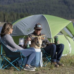 The Coleman Sundome 4-Person Dome Tent has an exclusive WeatherTec system that keeps you dry. You can also control airflow in this tent with adjustable Variflo ventilation. This camping dome tent is easy to transport and simple to set up. It is ideal for weekend car campers, short backpacking hikes or first time campers. This Coleman dome tent comes with a durable carry bag with separate storage bags for tents, poles and stakes. It also includes a rain fly, a privacy vent window and a Cool-Air port. It uses shock-corded poles with continuous pole sleeves for a smooth setup. The stable tent has a pin and ring design and InstaClip attachments. Inside there is an interior gear pocket and an electrical access port for added convenience. The easy-to-follow instructions are sewn into the carry bag