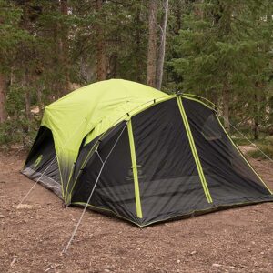 Camp at your own pace and stay comfortable on sunny days with the Coleman 6-Person Carlsbad Dark Room Dome Camping Tent with Screen Room, 2 Rooms, Green. This spacious camping tent uses Dark Room technology to block 98.4 percent of sunlight–so whether you’re sleeping in after the sun rises or seeking shelter from the heat, you’ll be able to enjoy your trip in comfort. It also features a separate screen room, which offers a comfortable place to lounge while sealing out bugs, debris, and other nuisances. Thanks to Fast Pitch system and snag-free Insta-Clip suspension, this fast pitch tent assembles 50 percent quicker than similar Coleman tents with a conventional setup. The Weather Tec system helps seal out water to keep you and your gear dry, while the included rainfly offers extra protection against rugged weather conditions. With its spacious interior, this dome tent offers enough room for two queen-sized air beds. Storage pockets help keep your gear organized, and an E-port lets you easily bring power inside the tent. Illumine reflective guy lines offer greater visibility at night, so you won’t accidentally trip in the dark. And when it’s finally time to pack up, the 6-person tent fits neatly inside the expandable carry bag for easy storage and transportation.