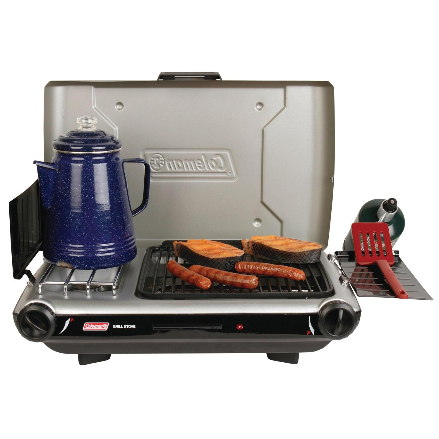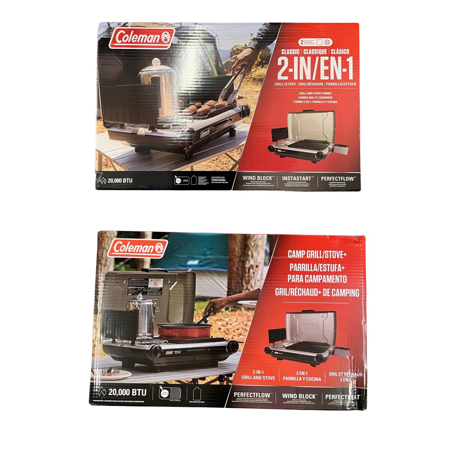 ColemanA Tabletop Propane Gas Camping 2-in-1 Grill/Stove 2-Burner, Gray, 2000038016