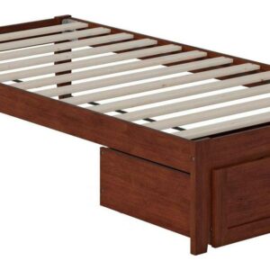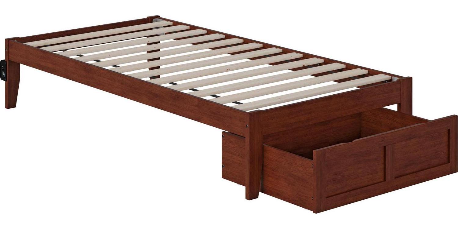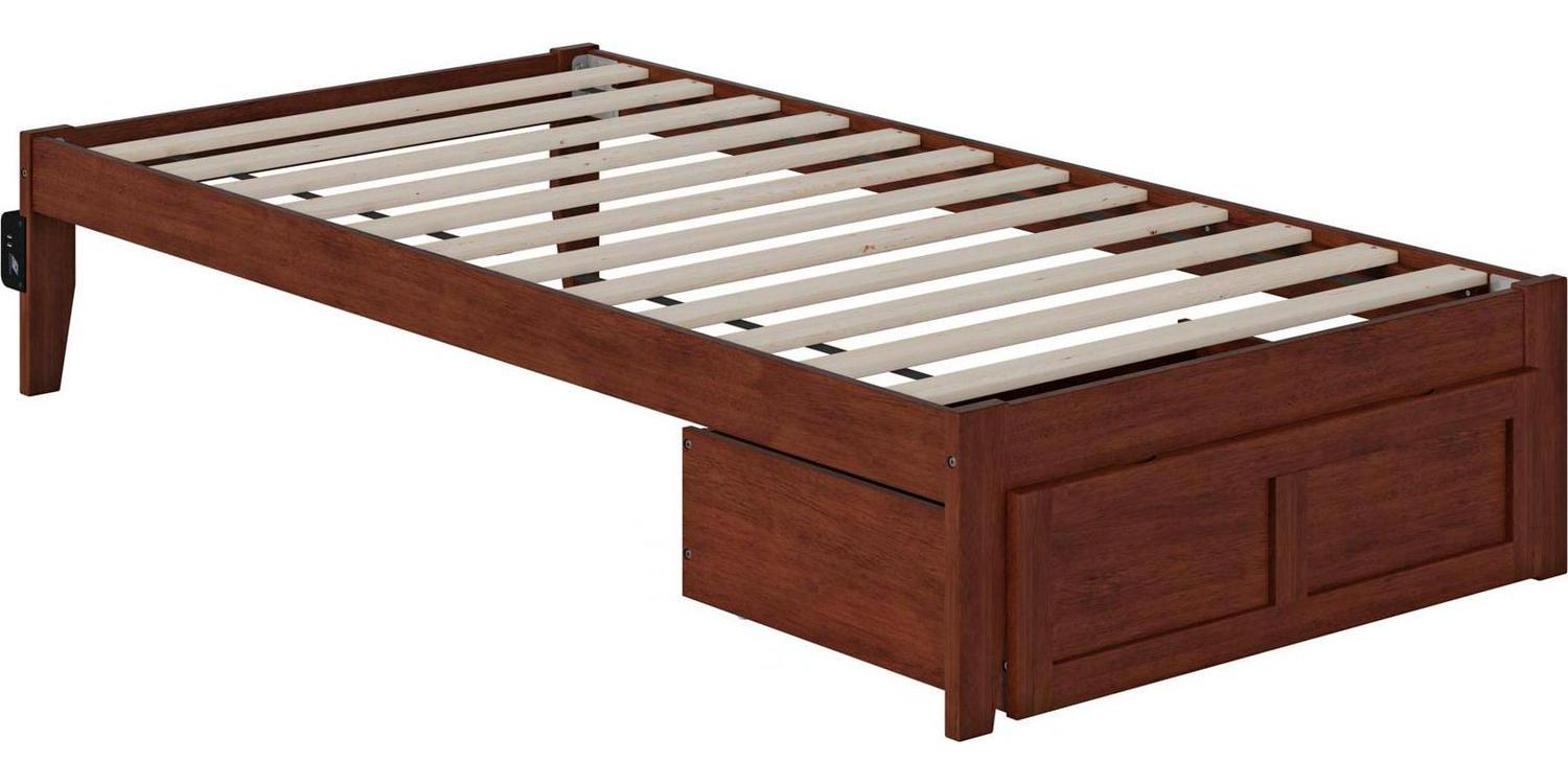 Colorado Twin Bed with Foot Drawer in Walnut with USB Turbo Charger
