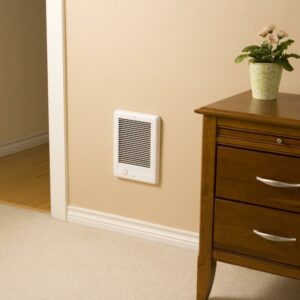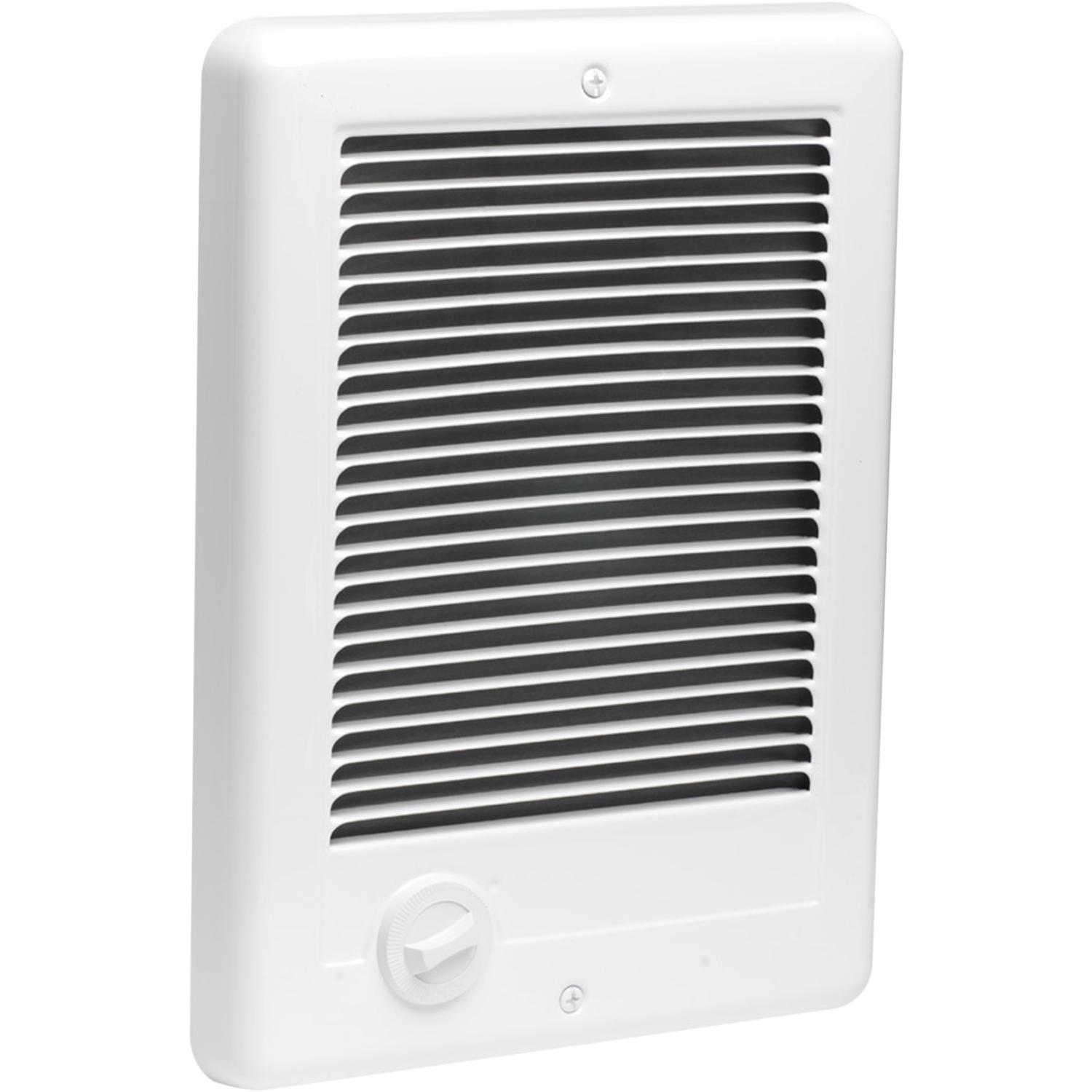Cadet Manufacturing 67506 White Hard Wired Com Pak Fan Forced Electric Heater 240V, 1500W has an adjustable, built-in thermostat. Wall can, high gloss enamel paint. 12″H x 9″W, UL listed.