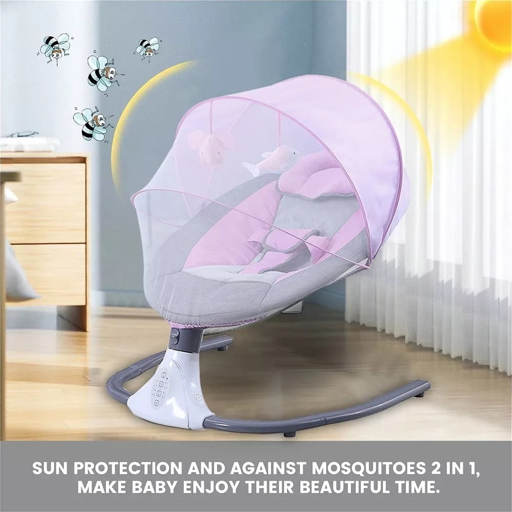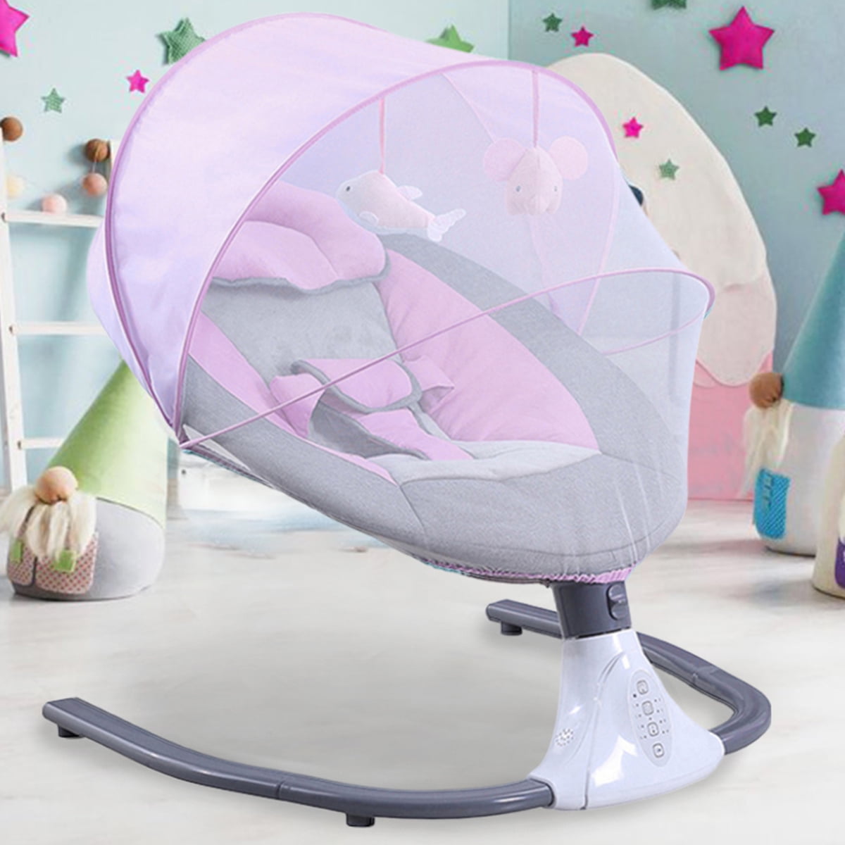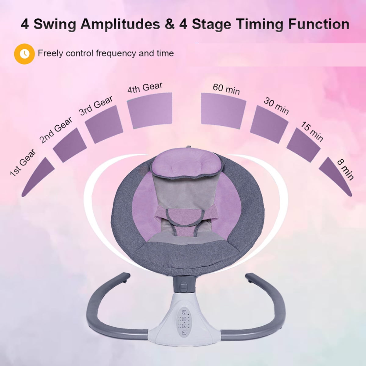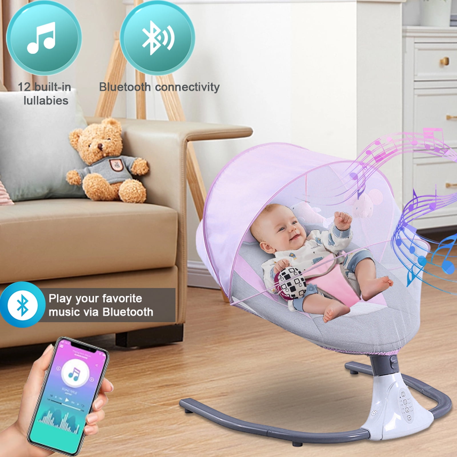 COMEONROA This electric baby swing is designed for newborns with curved design, which effectively protects the baby’s spine. It generally accompanies the baby from 1 month to 18 months, greatly reducing the parents’ burden. This baby swing has 4 swinging angles and comes with 12 built-in lullabies. It also supports connection to your phone and can play anything you want your baby to hear. have a 3-point harness safety system, baby can be fixed in the swing seat. The removable pillow helps adjust the height accordingly, and elastic pillow also prevents the baby from lying flat or having his head tilted. The removable mosquito net and seat cover add great convenience to washing.