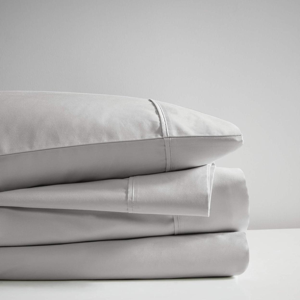 Comfort Classics Pima Cotton Sateen 600 TC 4 Piece Light Grey Sheet Set, Queen