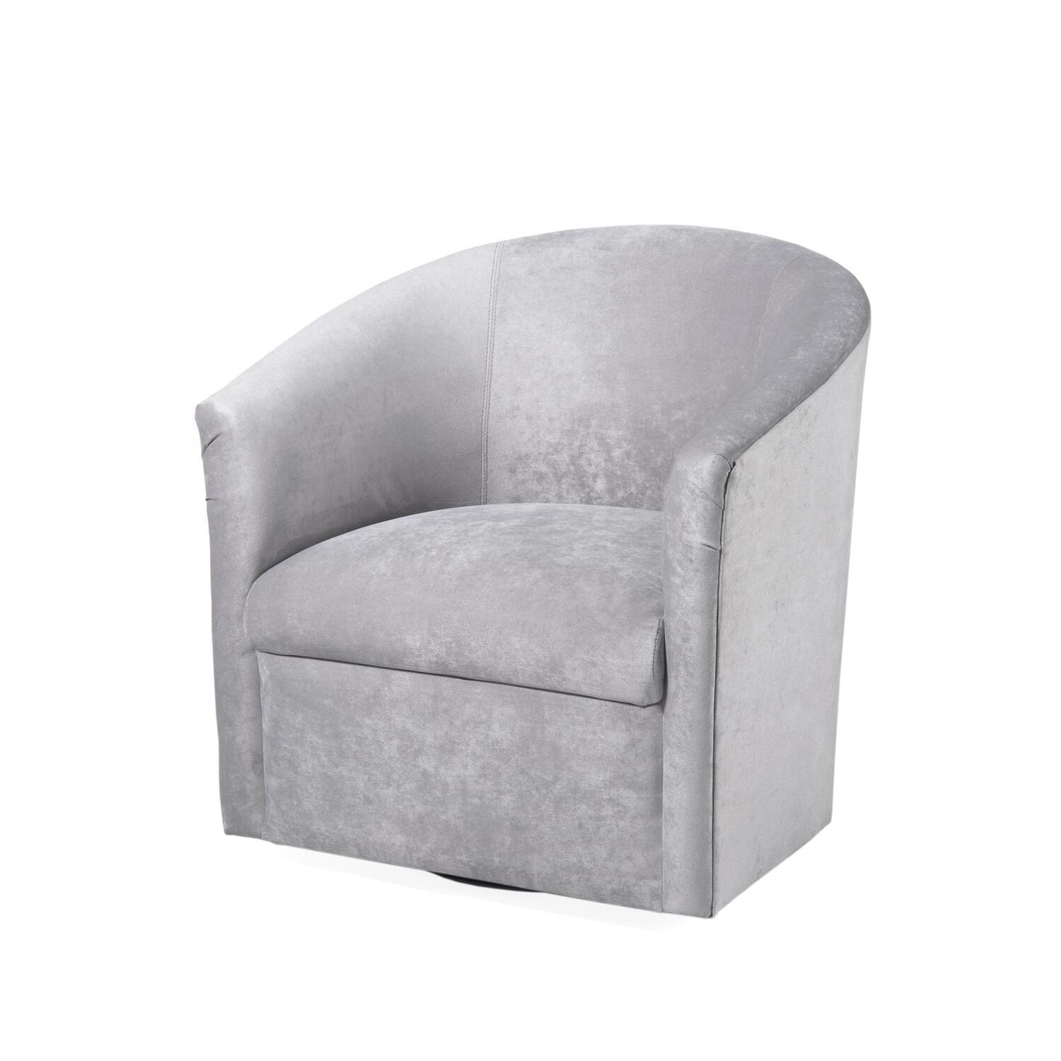 The Elizabeth in Silver will be the perfect accent to any room. The Elizabeth is fun and comfortable with a swivel base for added function. The luxurious microfiber has the look and feel of velvet without wrinkles or crushing. Highly durable, surpassing the 50,000 double rub test ensures many years of enjoyment.