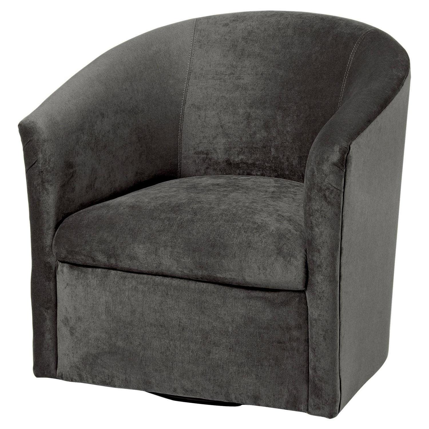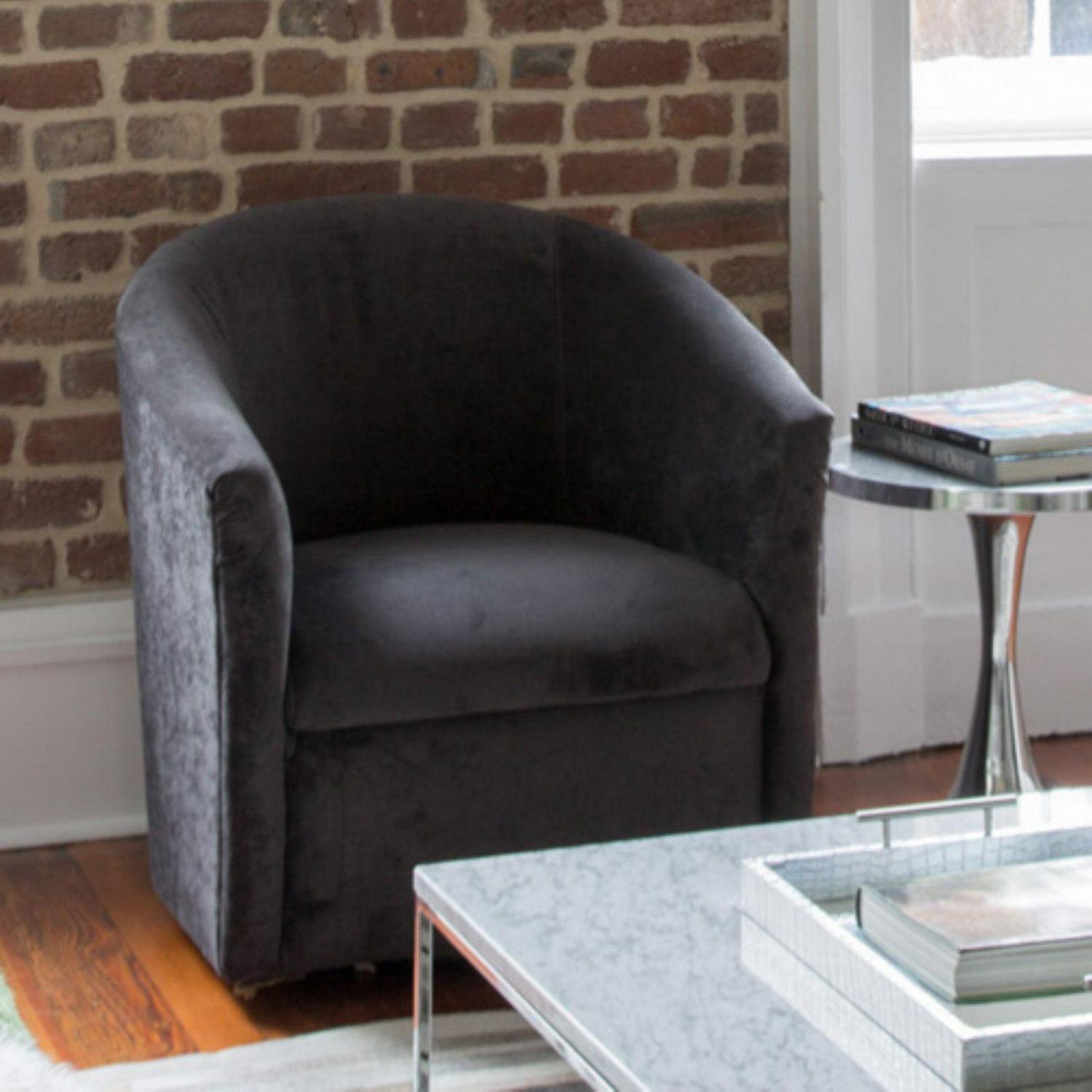 The Elizabeth in Charcoal will be the perfect accent to any room. The Elizabeth is fun and comfortable with a swivel base for added function. The luxurious microfiber has the look and feel of velvet without wrinkles or crushing. Highly durable, surpassing the 50,000 double rub test ensures many years of enjoyment.