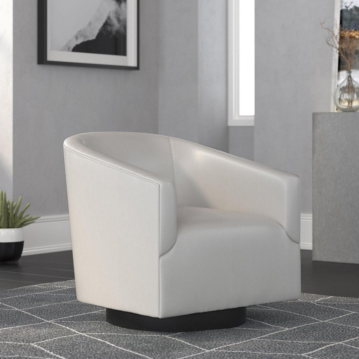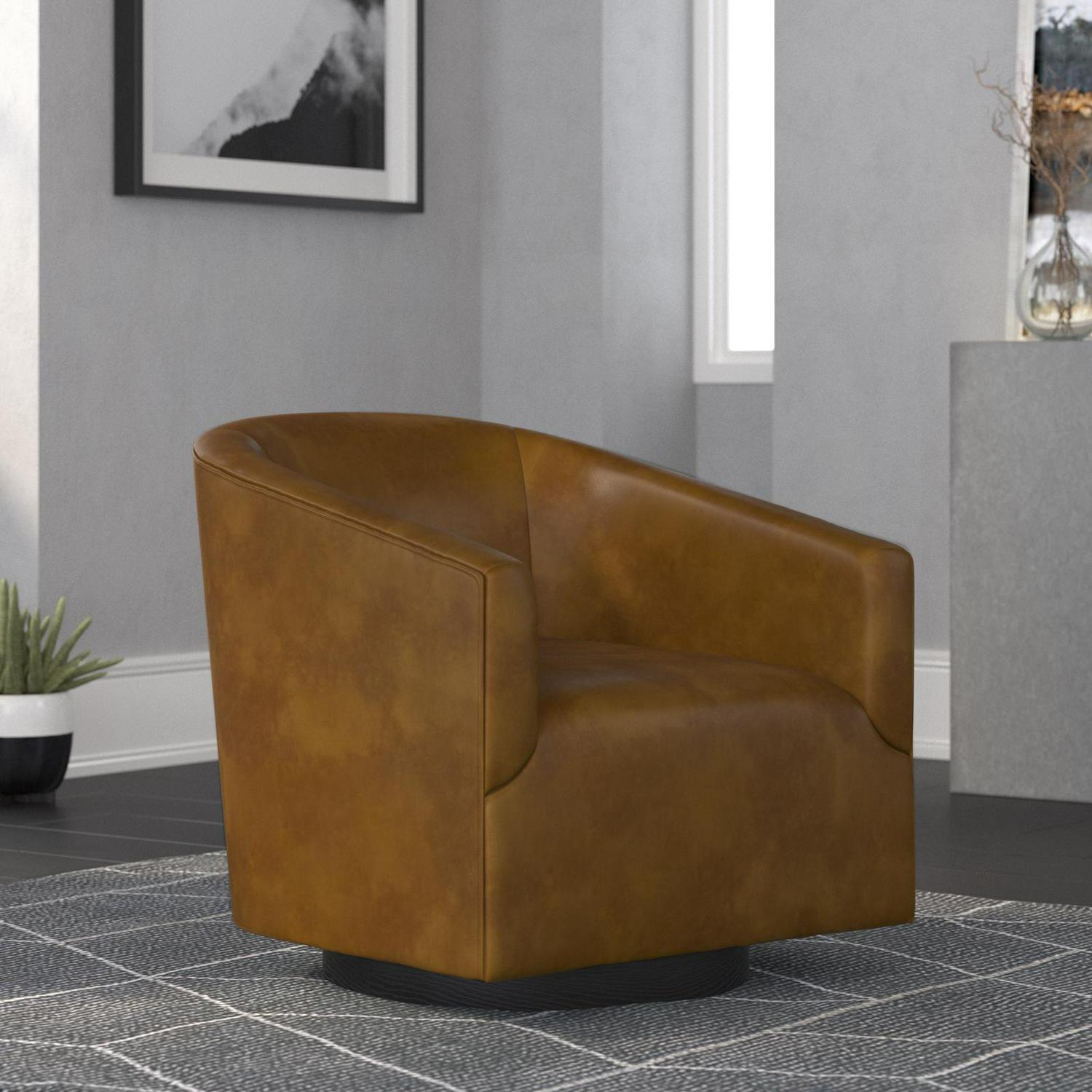 Complement your living room decor with the versatile and comfortable design of the Gaven Wood Base Swivel Chair. Made with a solid wood frame and upholstered in easy to clean durable cover, this swivel chair will create a cozy, contemporary look for years to come.