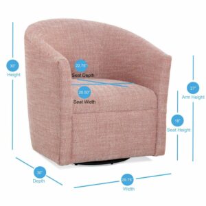 Kiln dried frame ensures sturdy construction Wrap around back and seat invite you to relax in comfort Compact design is well suited for smaller spaces Seat Cushion is wrapped in Dacron which is soft polyester fibers for better quality and comfort 360 degree Swivel Base Foam density is 1.9 Herringbone pattern fabric in easy to clean 100% polyester Made in the USA No Assembly Seat cushion is not removeable