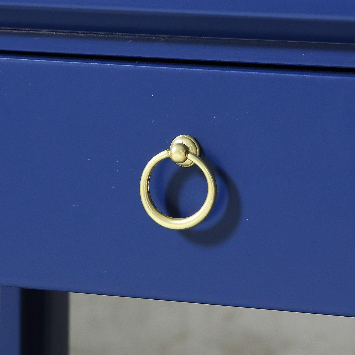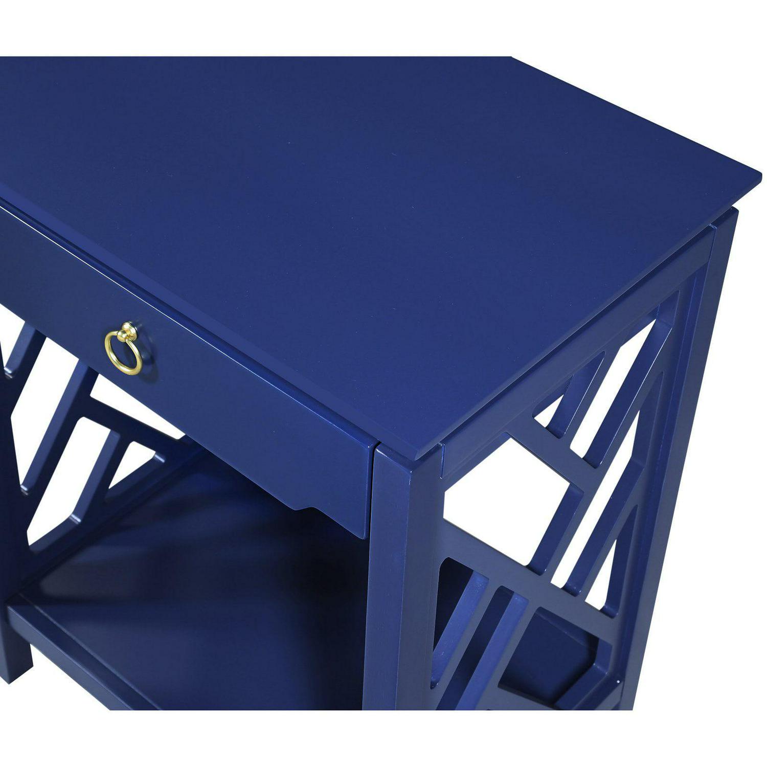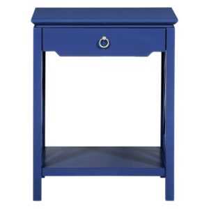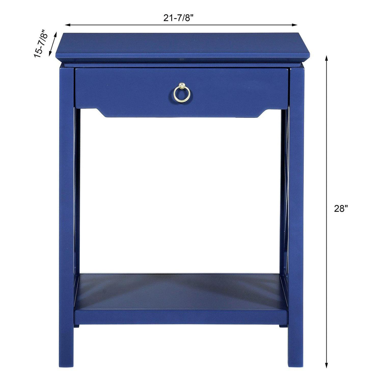 The transitional style of the Comfort Pointe Thomas 1 Drawer Chippendale-style allows it to blend easily with any decor. Crafted from hardwood solids and engineered wood, this nightstand is made to handle the rigors of everyday use. The single drawer is perfect for holding reading lights, reading glasses, and more while the bottom shelf displays your favorite books as well as the one you re currently reading. The drawer features full-extension metal roller bearing side glides so you never have to dig blindly around the back. The Chippendale sides add a fun touch while the brushed gold ring pull completes the look. Select from available finishes to create the perfect look for your home.