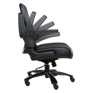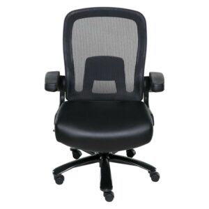 Feel positively presidential with the Comfort Products Taft Mesh Back Oversized Executive Chair with Pocket Coil Cushion. Sophisticated bonded leather creates a smooth impression, while the multi-layered mesh backrest stays cool and breathable. Designed to suit a wide range of sizes and shapes, the Taft is equipped with pocketed coils in the seating foundation for customized support over the long term. Fully adjustable lumbar support promotes proper alignment to see you through the longest workdays. An easy-to-use butterfly mechanism adjusts seat height, tilt angle, and tilt lock. The pneumatic lift is reinforced, and the armrests flip out of the way for the option of an armless chair. At 30 in. wide, the Taft surpasses most Big and Tall office chairs in roominess.