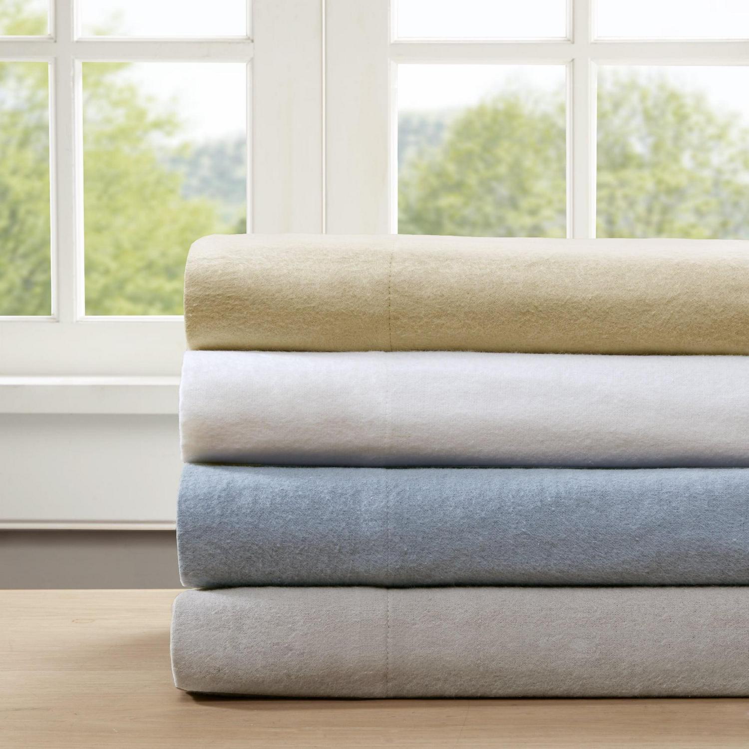 Keep warm and sleep well with the Comfort Spaces Solid 100% Cotton Flannel Solid Sheet Set. This ultra-soft and cozy sheet set showcases a solid color, for a simple yet chic look. Made from 100% cotton, this flannel sheet set is perfect for keeping you warm and cozy through the night. Set includes: 1 Flat Sheet, 1 Fitted Sheet, and 4 Pillowcases(2 for Twin Size).