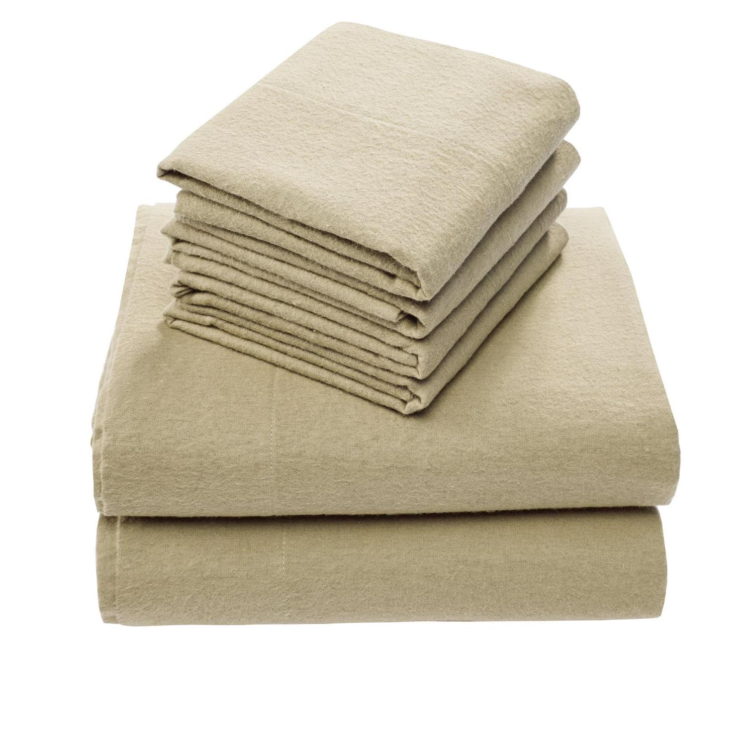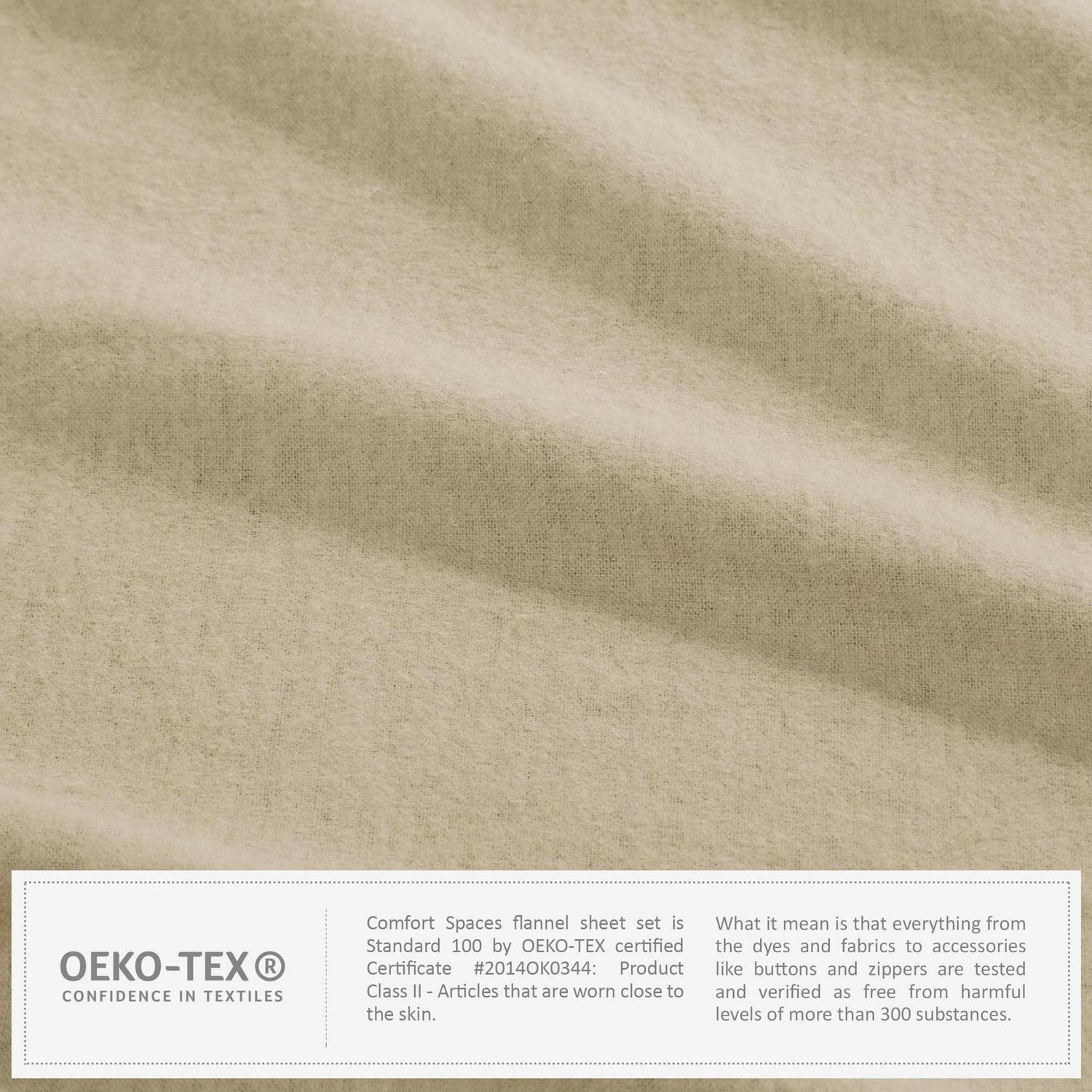 Comfort Spaces Cotton Flannel Sheet Set, Queen, Tan